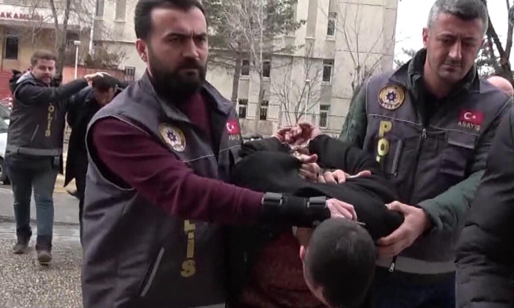 • Erzurum'da cezaevinden firar edip eşi Elif Saydam'ı öldüren Şafak Saydam (ortada), eşe ve kadına yönelik kasten öldürme suçundan ağırlaştırılmış müebbet hapis cezasına çarptırıldı. Fotoğraf: Arşiv/Erzurum, (DHA)