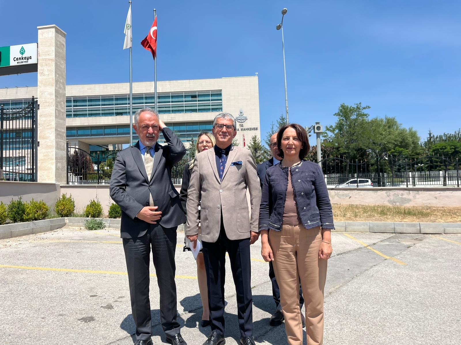 CHP Grup Başkanvekili Gökhan Günaydın, 7548, 7549, 7551 (Cumhurbaşkanına Rektör atama yetkisi tanıyan ve belediyelerden yurt açma yetkisini alan kanun), 7550 (10uncu Yargı Paketi), 7552 (İklim Kanunu) sayılı kanunlar ile 186 nolu Cumhurbaşkanlığı Kararnamesi’ne ilişkin AYMye başvuruda bulundu. Günaydın, söz konusu kanunlardaki bazı düzenlemelerin yürürlüklerinin durdurulması ve iptalleri istemli dilekçeyi sunduktan sonra, AYM önünde açıklama yaptı. Günaydın, “Cumhuriyet Halk Partisinin verdiği 774 kanun teklifinin tamamını reddeden, 1250 araştırma önergemizin hiçbirini gündeme almayan bir Cumhur İttifakı çoğunluğu ile karşı karşıyayız. Bugün 774 sayılı KHKya ilişkin 3 ayrı paketi getirdik buraya. Bunun yanında 10’uncu Yargı Paketi 4’üncü düzenleme olarak Anayasa Mahkemesine sunuldu. İklim Kanununun tüm maddelerinin iptali için buradayız ve nihayet bir Cumhurbaşkanlığı kararnamesinin iptali de olmak üzere toplam 5 yasa ve bir Cumhurbaşkanlığı kararnamesi için Anayasa Mahkemesine yürütmesinin durdurulması öncelikle ve her halükarda iptali için hazırladığımız dilekçeleri mahkemeye verdik” dedi.