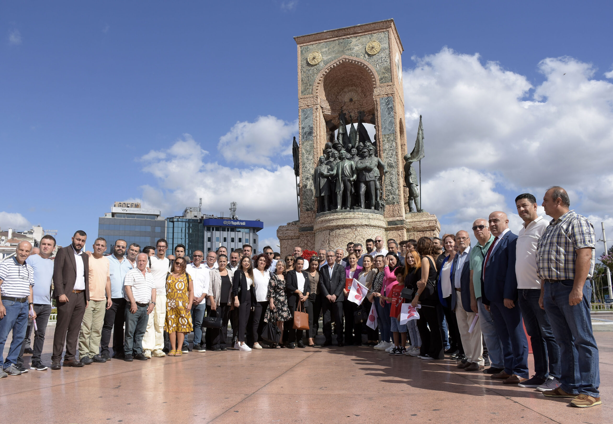 CHP’nin 100. kuruluş yıldönümü nedeniyle İstanbul İl Başkanlığınca, Taksim’deki Cumhuriyet Anıtı önünde tören düzenlendi. Anıta çelenk konulmasıyla başlayan törende, saygı duruşunda bulunulmasının ardından İstiklal Marşı okundu. CHP İstanbul İl Başkan Yardımcısı Saniye Yurdakul, Cumhuriyet kadar köklü, Gazi Mustafa Kemal Atatürk’ün emaneti olan CHP’nin 100. kuruluş yıldönümünü kutlamaktan gurur duyduklarını belirterek şöyle konuştu: “Bir milletin esaretten kurtuluşuna ve bir ülkenin baştan aşağı yeniden kuruluşuna öncülük etmiş bir partinin, mirasını bir asra dayamış bu şerefli demokrasi mücadelesinin parçası olmaktan mutluluk duyuyoruz. Dünün zorluklarıyla büyüyen Cumhuriyet Halk Partisi’nin, yarının idealleriyle daha da büyüyeceğine olan inancımız tamdır. Büyük Atatürk; Cumhuriyeti ilan etmeden 1922 Aralık ayında “Barıştan sonra halkçılık esası üzerine dayanan ve Halk Fırkası adıyla siyasi bir fırka kurmak niyetindeyim” diyerek; Kurtuluş Savaşı sonrası ülkemizin yeni bir yönetime kavuşmasıyla birlikte 9 Eylül 1923’te Türkiye’nin ilk siyasi partisi olarak Cumhuriyet Halk Partisi kurmuştur. ” dedi.