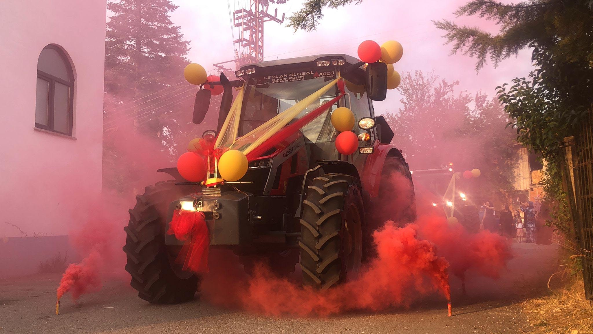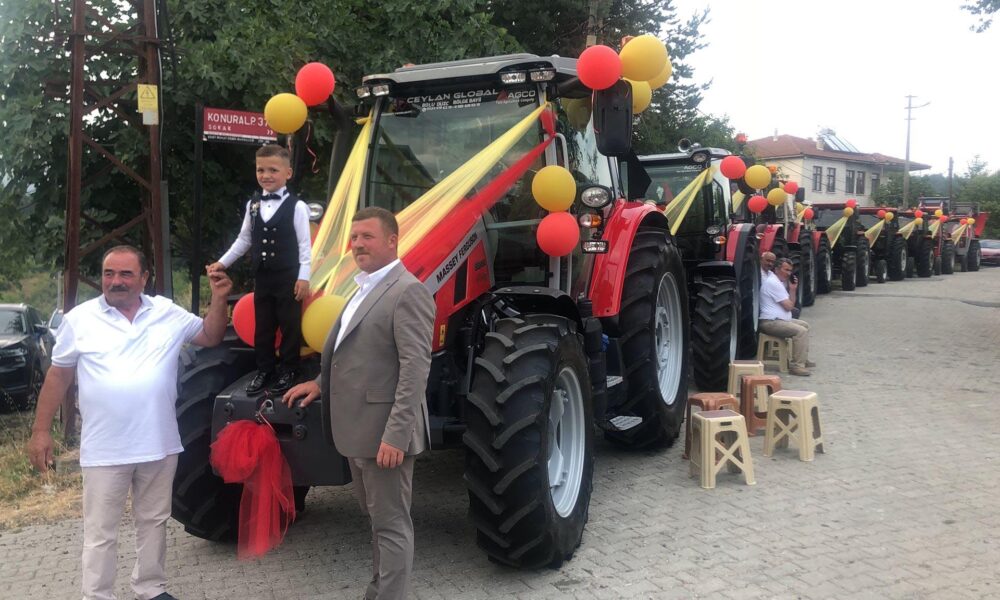Konuralp Mahallesinde çeltik üreticiliği yapan Orhan- Büşra Aktepe çifti, 5 yaşındaki çocukları Mahir için sünnet mevlidi düzenledi. Çiftçi aile, traktörlerini de süsleyerek sünnet aracı yaptı. Köylüler de traktörlerini süsleyerek sünnete katılarak konvoy halinde dolaştılar. Sünnetin yapılacağı salona gelen traktör sis bombaları eşliğinde karşılandı.