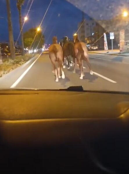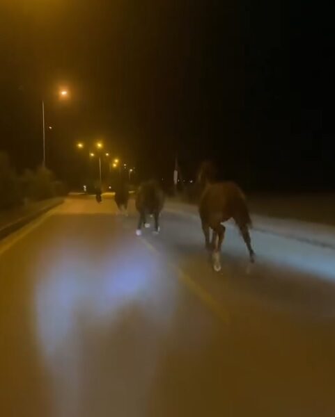 Çiftlikten kaçan yarış atları, D-400 kara yolunda görüntülendi