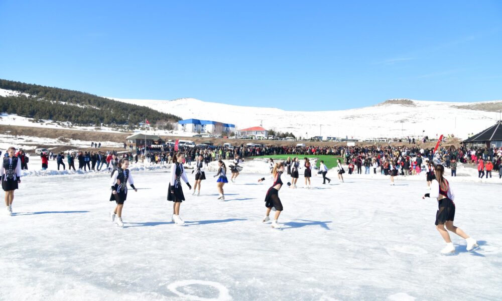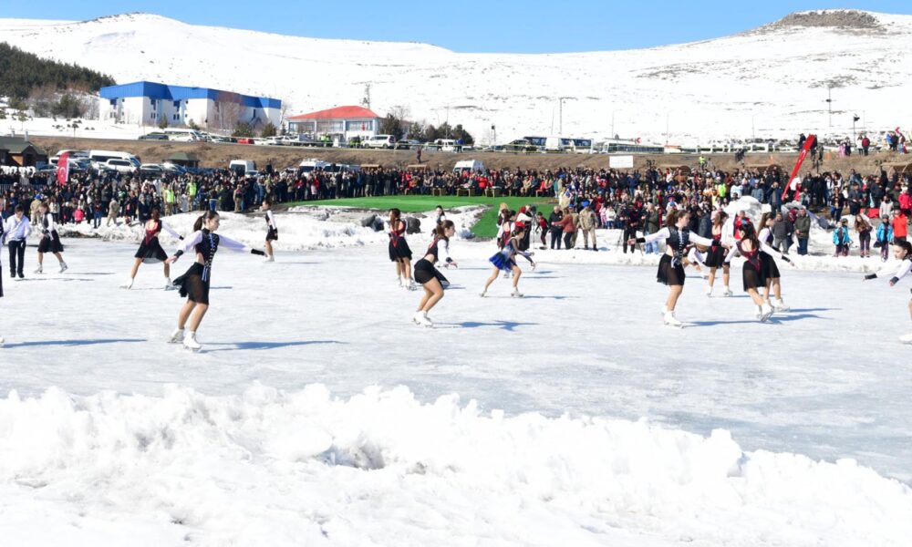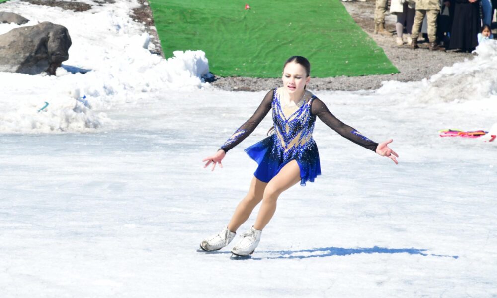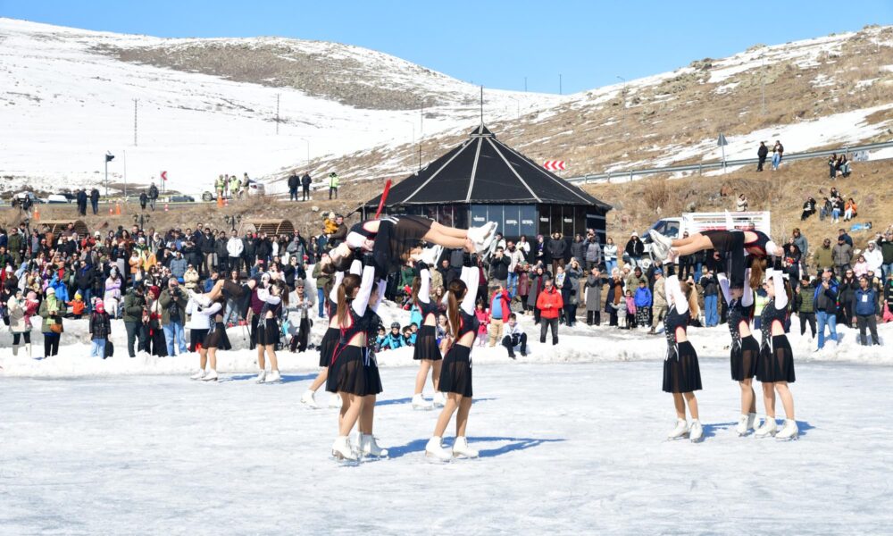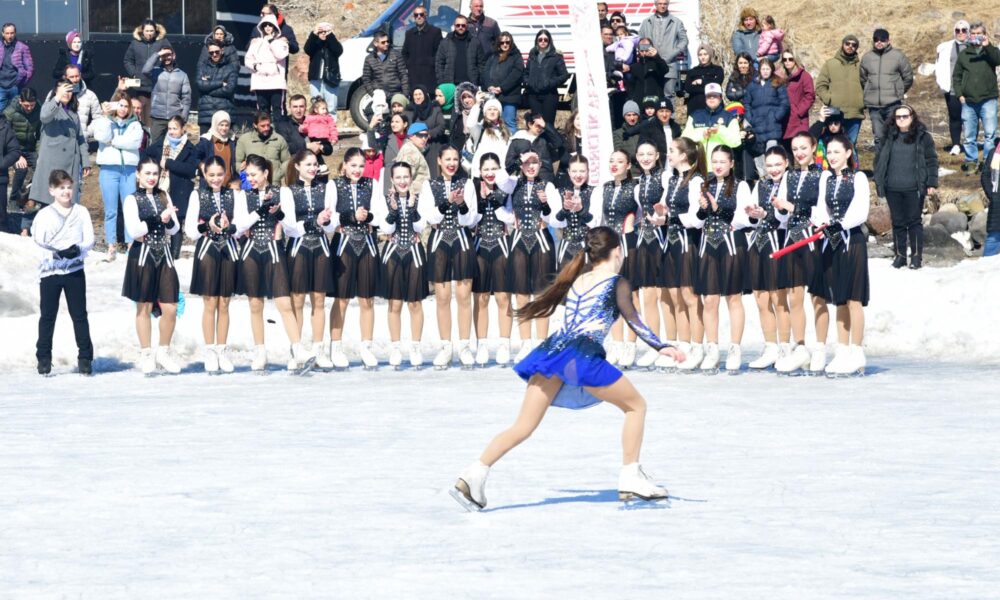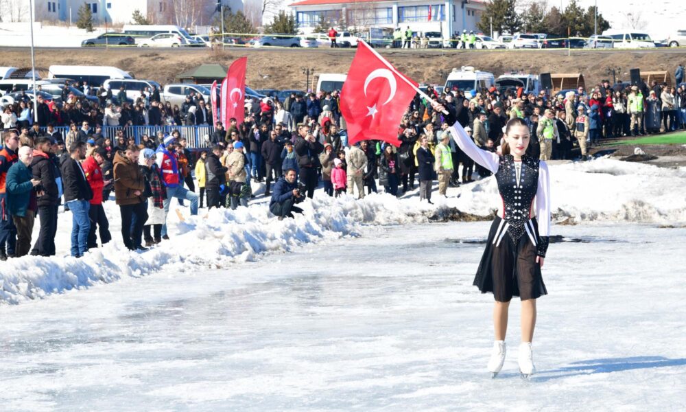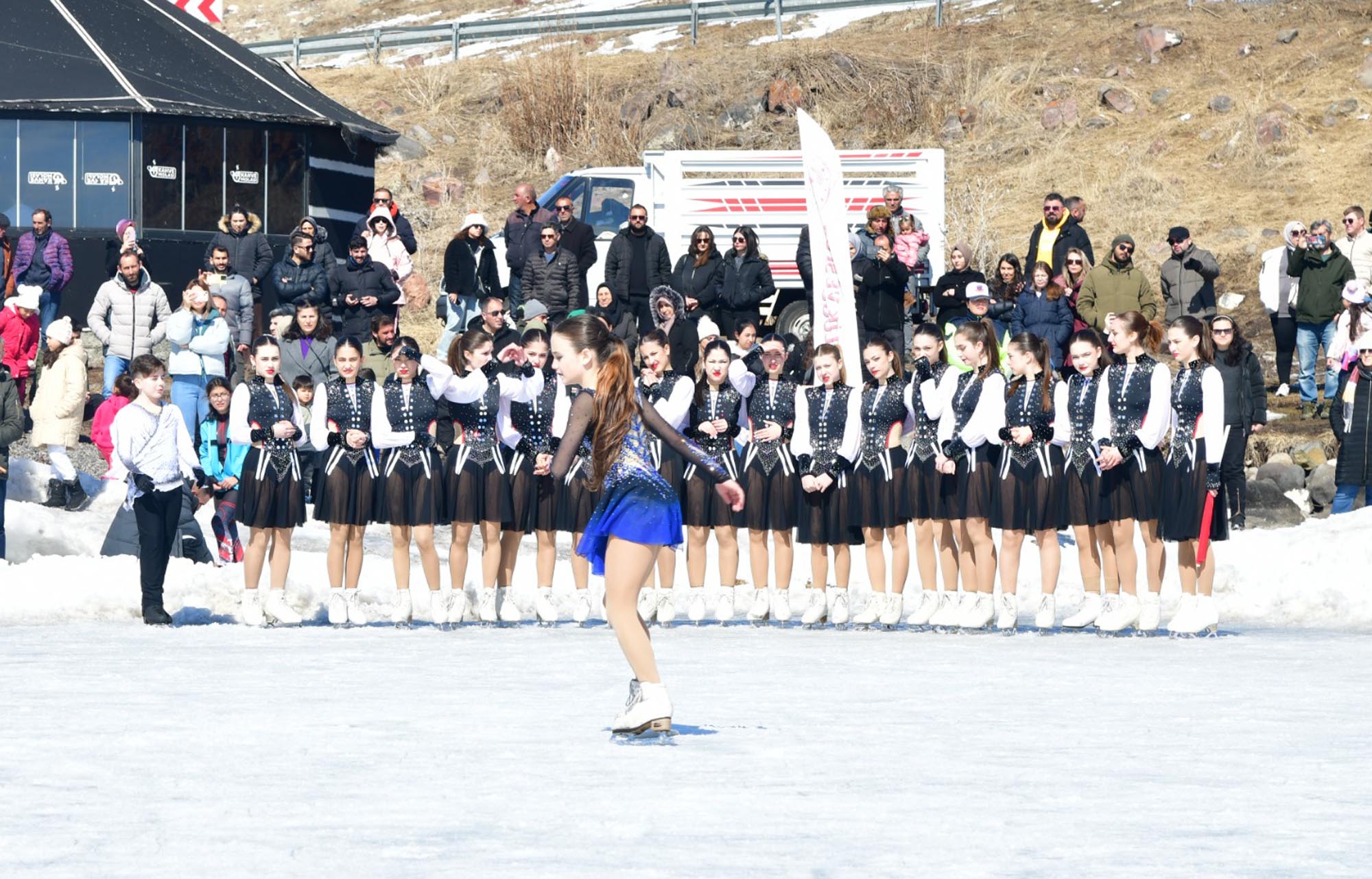 Çıldır Gölü’nde ‘Kadınlar Günü’ne özel buz pateni gösterisi