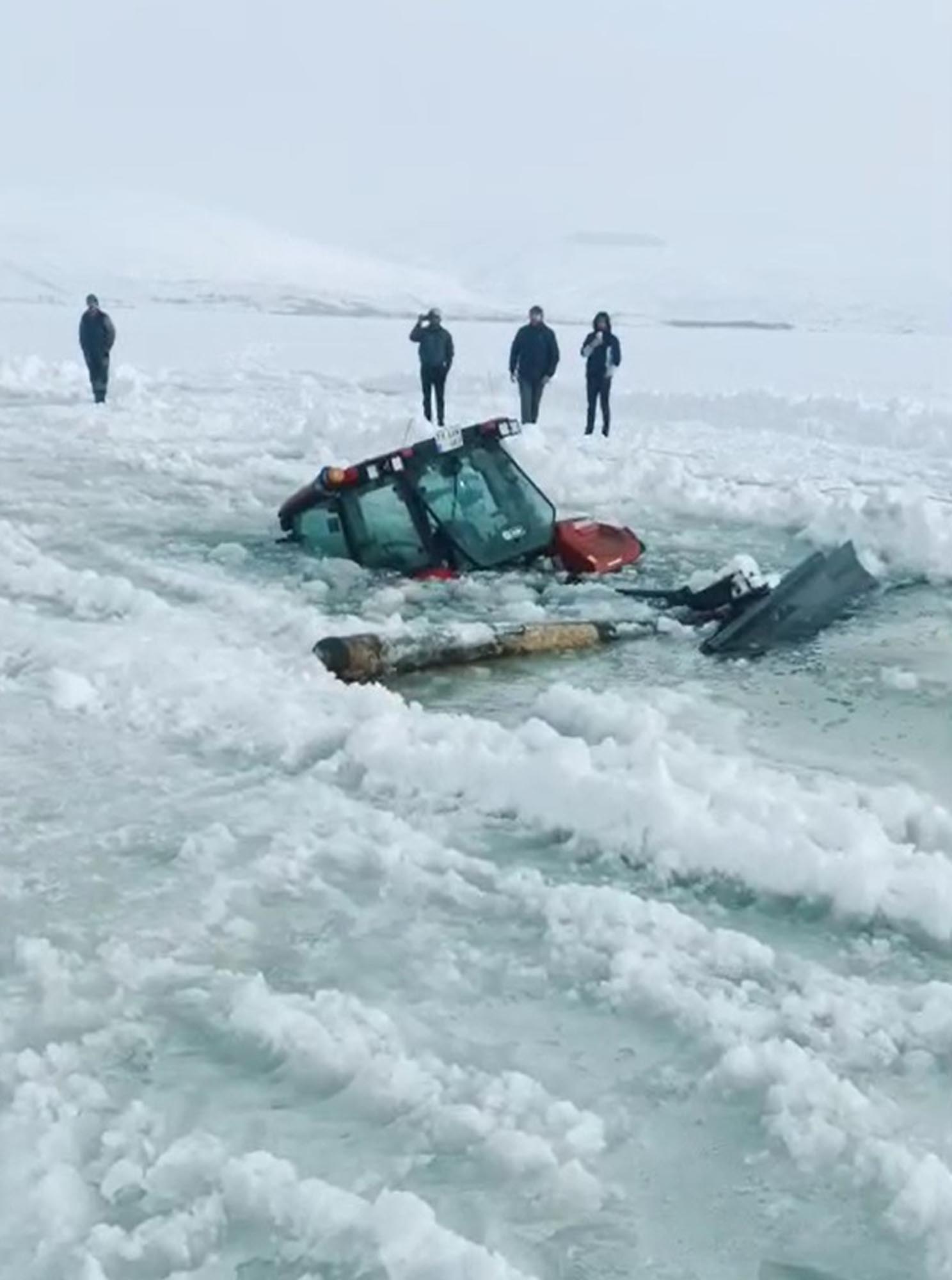 Çıldır Gölü’nde şubat ayıyla hava sıcaklıklarının mevsim normallerinin üzerinde seyretmesi sebebiyle çözülme erken başladı. Buz tutan yüzeyi çözülen gölde, hafta sonu yapılacak olan festivalin hazırlıklarını sürdürülürken, 1 traktör suya gömüldü. Çıldır Gölü’nde yapılacak festivalin hazırlıklarına devam edilen belediye tesisleri bölgesinde suya gömülen traktörün sürücüsünün ise son anda atlayıp kurtulduğu belirtildi.