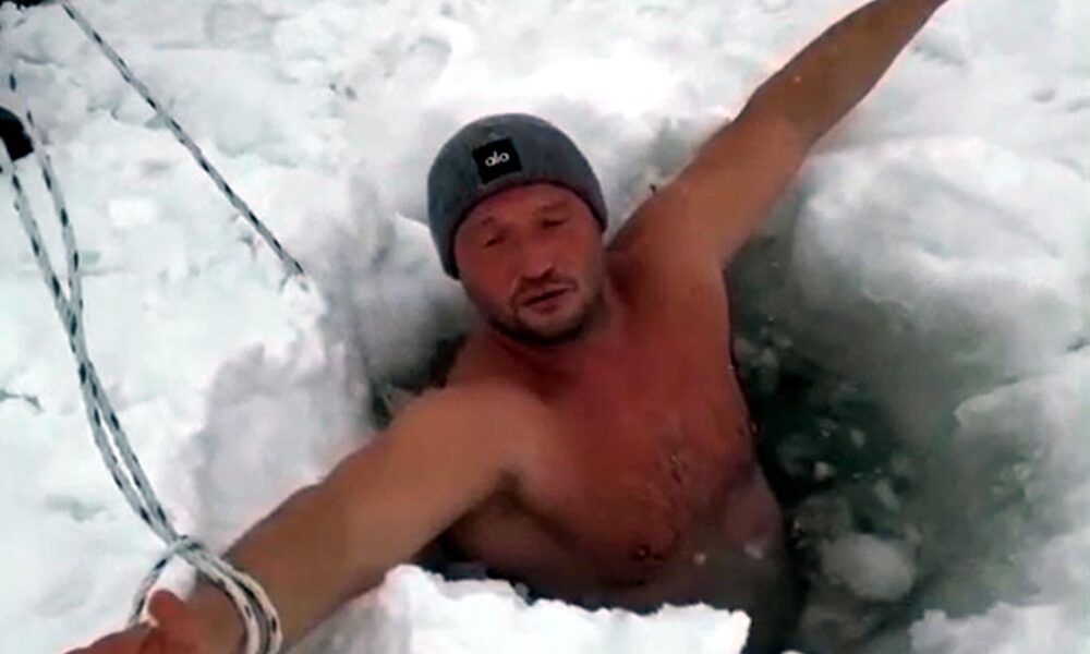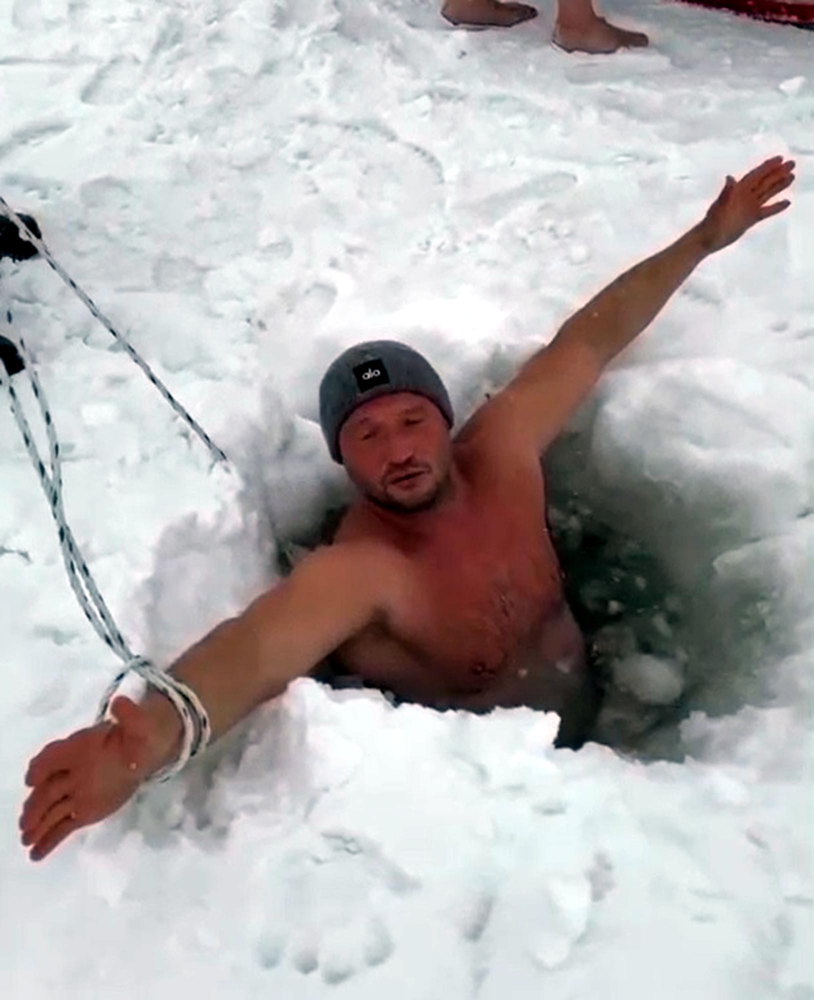 İstanbuldan gelen yüzücüler Aydın Aydıner ile Hayriye Çetin, Çıldır Gölü’nde kızak keyfinin ardından buz gibi suya girdi. Gölde atlı kızak işleten Dural Daşdemir’in yaklaşık 40 santimetre kalınlığındaki buzu kırmasının ardından önce göle Aydın Aydıner girdi. Koluna güvenlik için ip bağlayan Aydıner, suda bir süre bekledi. Aydıner, suyun dışardan sıcak olduğunu söyledi.