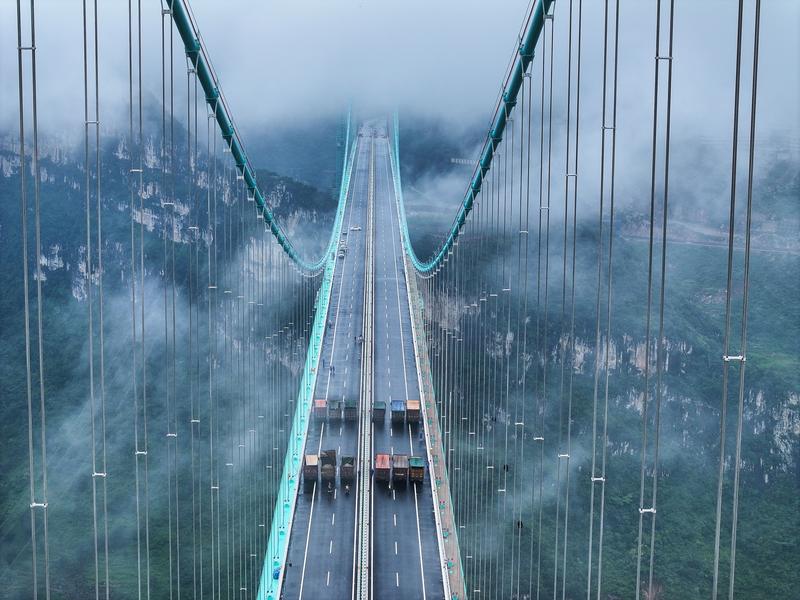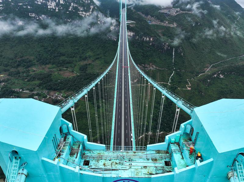 Huajiang Kanyon Köprüsü, ana açıklık ve yerden yüksekliği ile hem yatay hem de dikey olarak dünya en büyük köprüsü olma ünvanını elde etti.