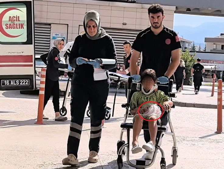 Cipe çarpan otomobildeki 2’si çocuk 4 kişi yaralandı; oyuncağını elinden bırakmadı
