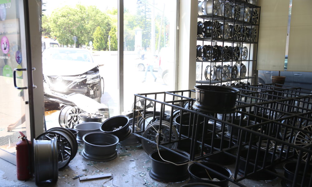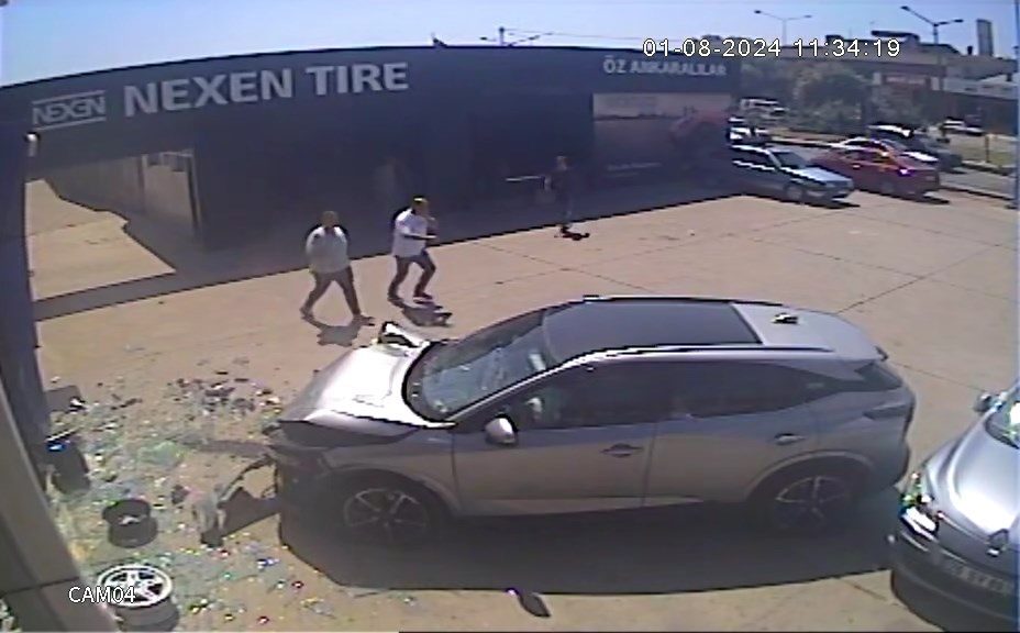 • Eskişehir’de sürücüsünün kontrolünden çıkan cip, park halindeki otomobile ve cenaze aracına çarpıp lastik satışı yapan iş yerine daldı. Kazada cip sürücüsü ile iş yeri çalışanı yaralanırken, kaza anı güvenlik kamerasına yansıdı. Fotoğraf: Eskişehir, (DHA)