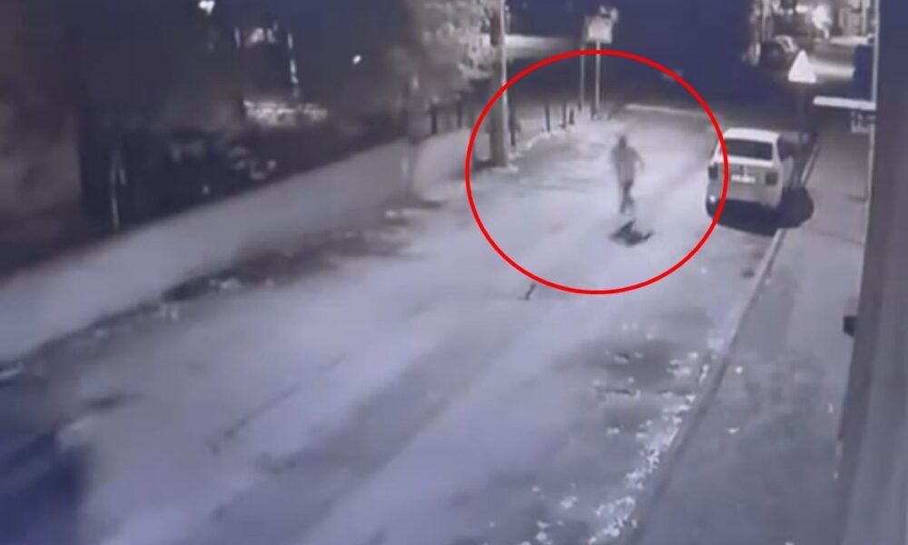 Cipiyle, sahibinin gezdirmeye çıkardığı köpeğe çarpıp kaçtı; o anlar kamerada
