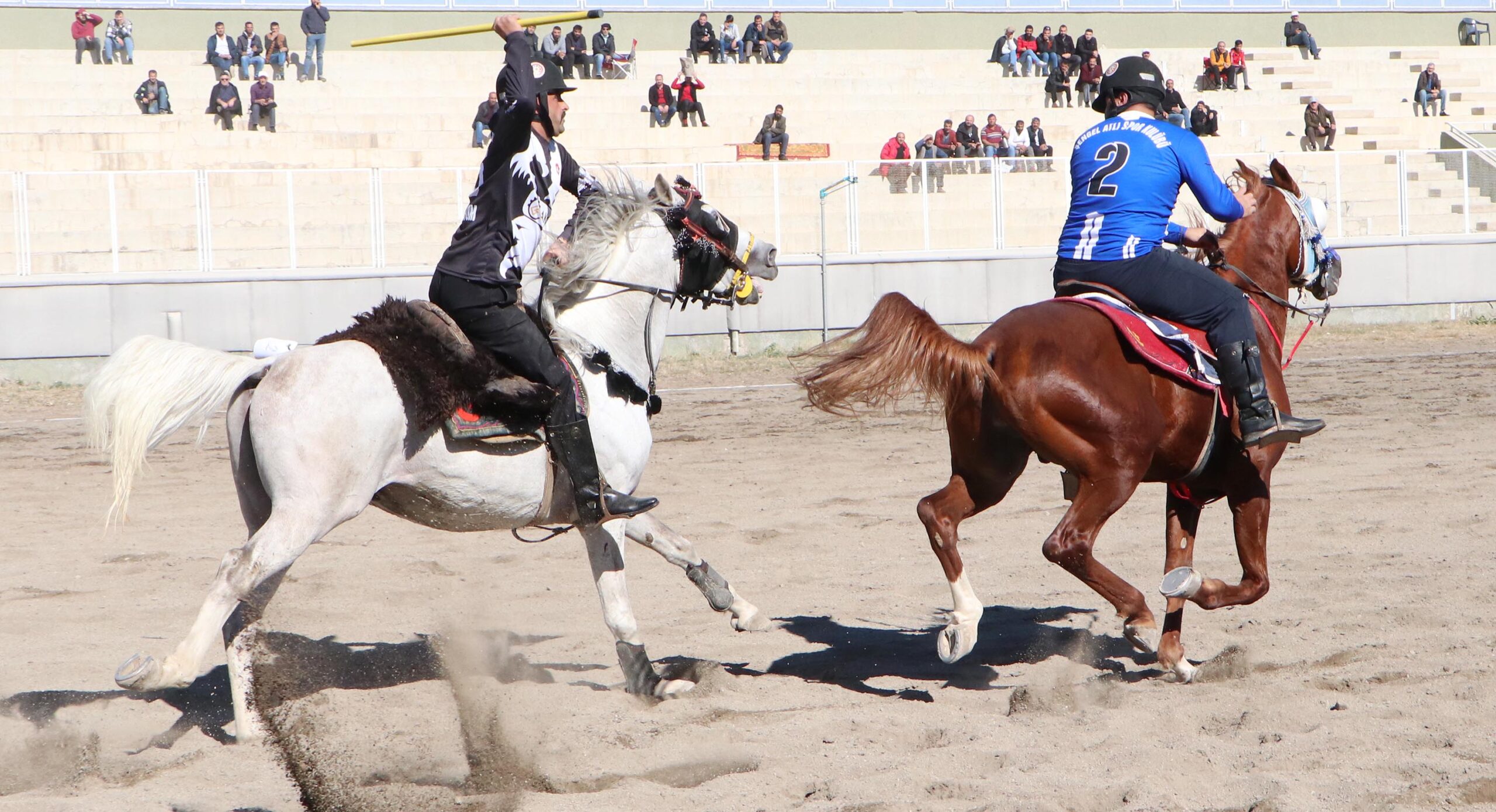 TÜRKİYE Geleneksel Atlı Spor Dalları Federasyonu tarafından Erzurum’da düzenlenen 1’inci Lig maçları devam ediyor. Federasyon, karşılaşmalarda ‘joker’ at kullanımının önüne geçmek için çipli önlem aldı. Müsabaka öncesi hakemler, cihazla atların boyun derisi altında bulunan çipleri tek tek kontrol ediyor.