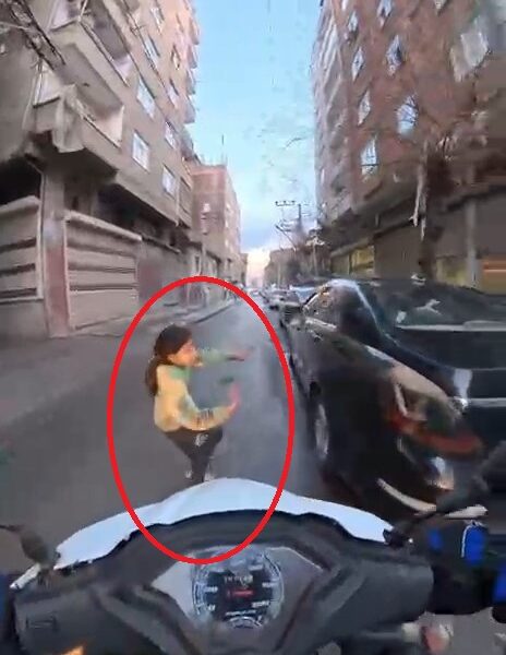 Bu arada olay, sürücünün kask kamerasına yansıdı. Görüntülerde, çocuğun bir anda yola fırladığı ve sürücünün aniden durduğu görüldü. Sürücü Eryılmaz’ın çocuğa dikkatli olması konusunda saçını okşayarak uyarılarda da bulunduğu görüntülerde yer aldı.