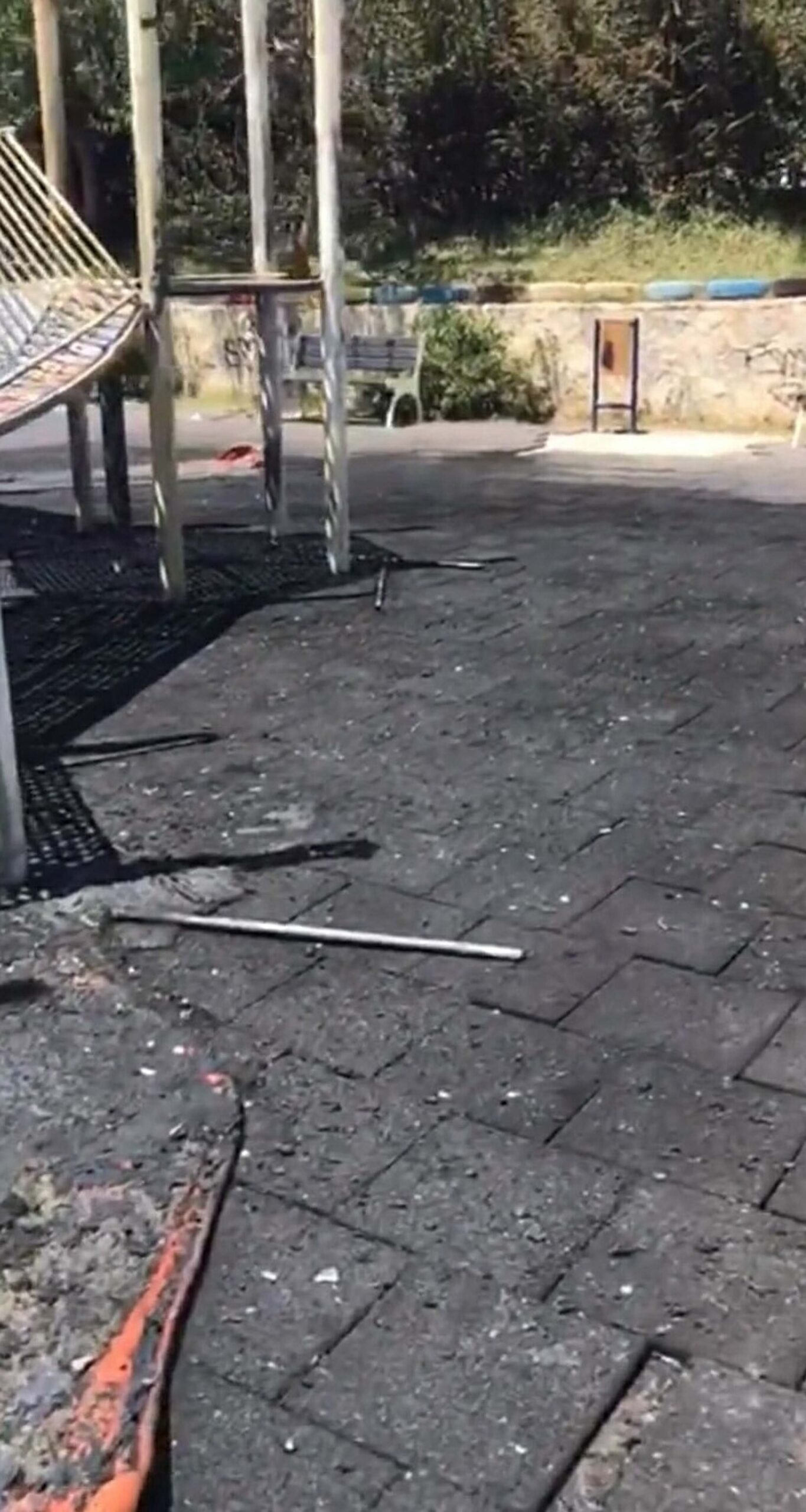 İZMİR’in Buca ilçesindeki Şemsiyeli Çocuk Parkı’nda oyun grubu, çıkan yangında kullanılamaz hale geldi.