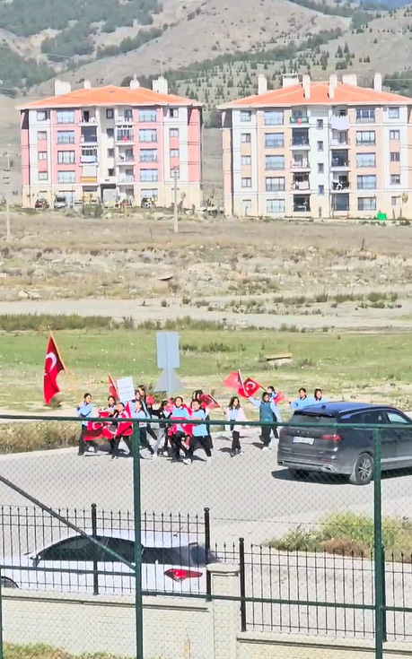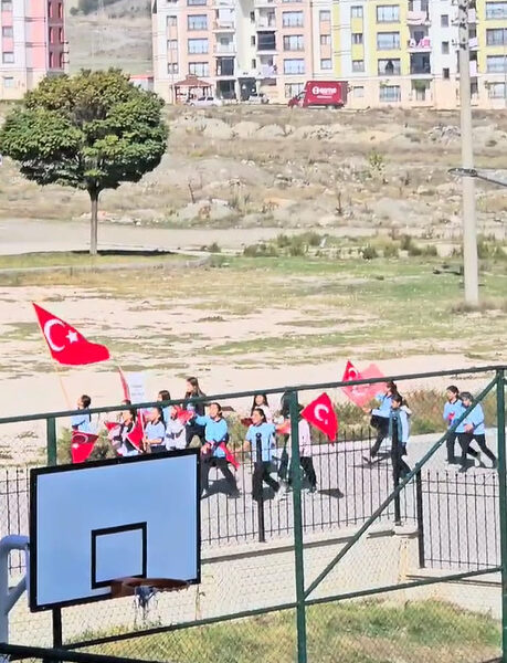 Çocukların bayraklı, marşlı 29 Ekim coşkusu kamerada