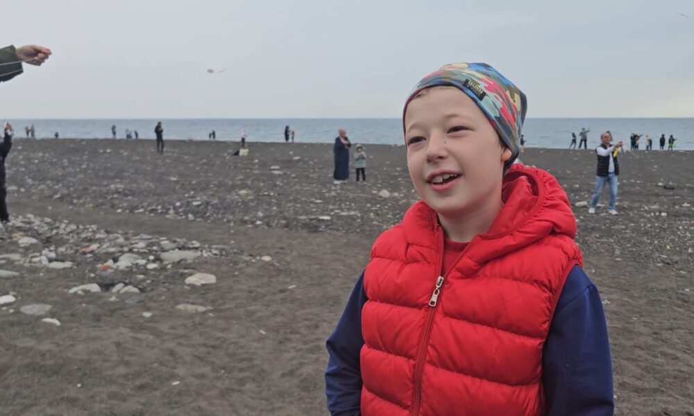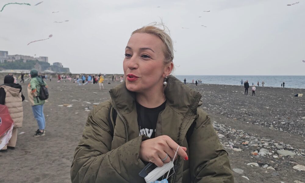Zonguldak'ta bir ilkokulun düzenlediği uçurtma festivalinde çocuklar ve aileleri eğlendi. Çocuğuyla birlikte gelen Sinem Açıkalın (Fotoğrafta) mutlu olduklarını söyledi. Fotoğraf: Ali Sencer ARSLAN/Zonguldak, (DHA)