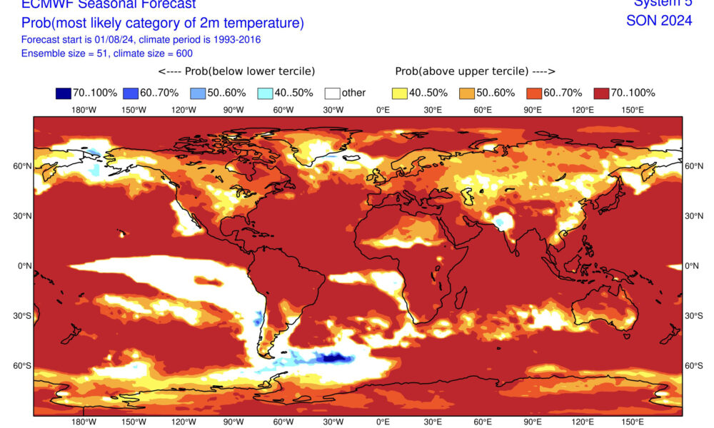 • Avrupa Orta Vadeli Hava Tahminleri Merkezi (ECMWF) sezonluk tahminleri üzerinden uyarılarda bulunan Prof. Dr. Barış Önol, çok sıcak geçen yaz aylarının ardından yeni tahminlere göre sonbahar aylarının öngörülerinin de çok sıcak bir döneme işaret ettiğini
