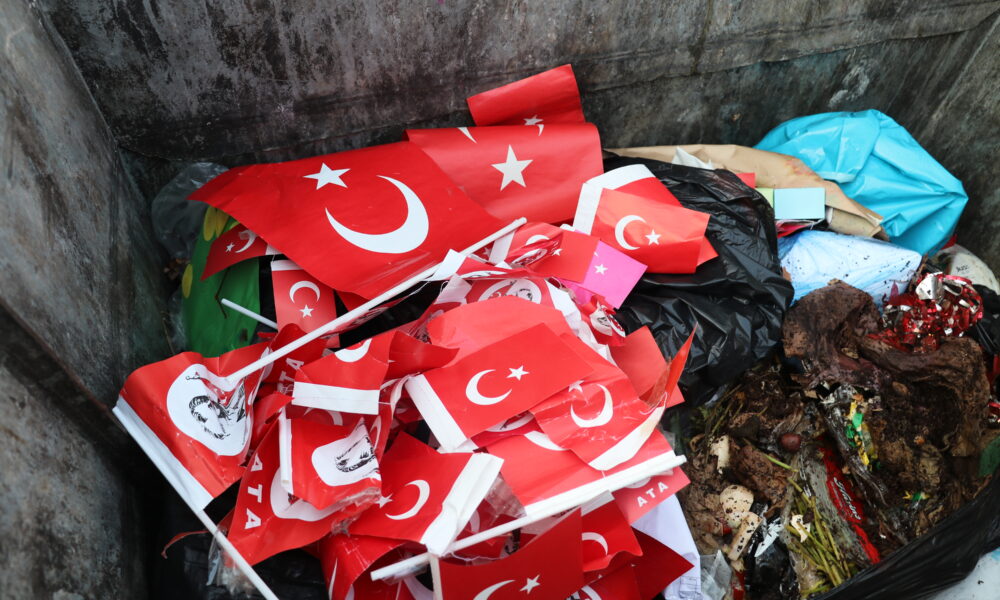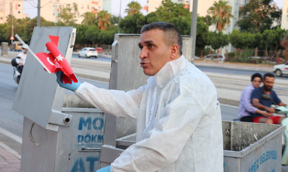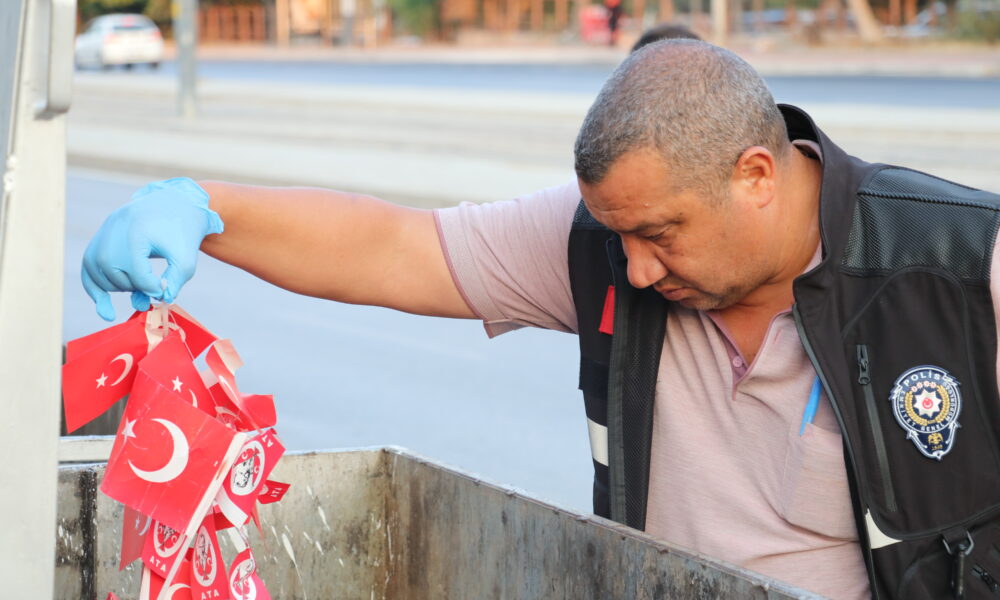 Çöp konteynerinde Türk bayrağını görünce polise haber verdi