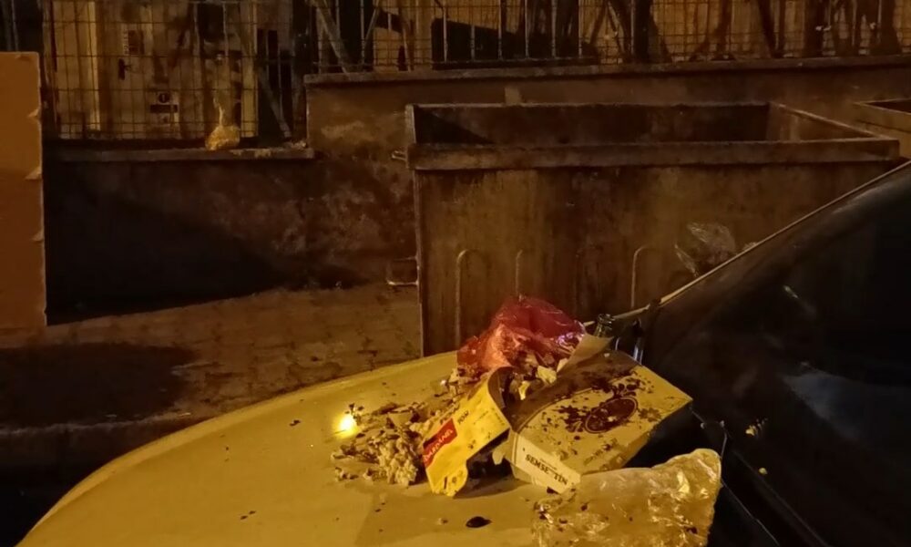 Çöplerini konteynerin önüne park eden otomobilin üzerine atıp, kayda aldılar