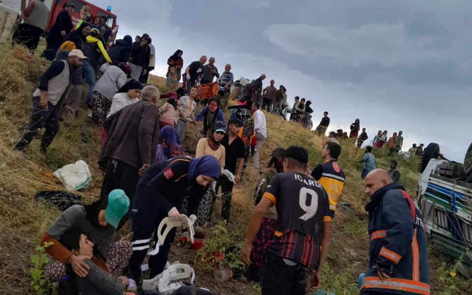 Çorum’da tarım işçilerinin taşındığı kamyonet devrildi: 12 yaralı