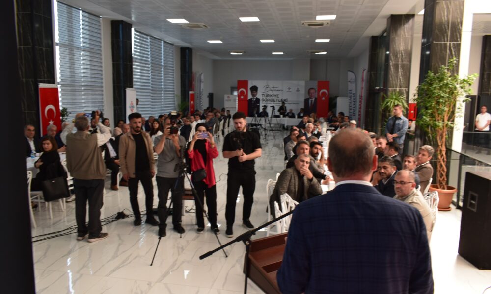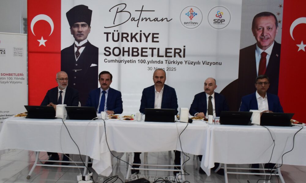 Batmanda, ‘Cumhuriyetin 100’üncü yılında Türkiye Yüzyılı’ vizyonu kapsamında ‘Türkiye Sohbetleri’ toplantısı gerçekleştirildi. Batman Belediyesi ek hizmet binasında düzenlenen programa Cumhurbaşkanı Başdanışmanı ve Cumhurbaşkanlığı Sağlık Politikaları Kurulu Üyesi Ahmet Selim Köroğlu, Cumhurbaşkanı Danışmanı ve Sivil Dayanışma Platformu Başkanı Ayhan Oğan ve AK Parti Kültür ve Sanat Politikaları Başkan Yardımcısı Şeyhmus Dinçel katıldı. Heyete Vali ve Belediye Başkan Vekili Ekrem Canalp eşlik etti. Sivil toplum kuruluşları ile yapılan toplantı ve konuşmaların ardından basına kapalı olarak devam programa, vali yardımcıları, iş insanları, kurumlar, siyasi partiler ve sivil toplum kuruluşlarının temsilcileri de katıldı.