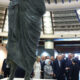 Cumhurbaşkanı Erdoğan, Türkiyeden kaçırılan tarihi eserlerin ülkeye iadesi için yoğun bir mücadele içinde olduklarını da belirterek, “Yurt dışına çıkarılan bu eserleri uzun yıllar süren bilimsel çalışmaların yanı sıra hukuki ve diplomatik girişimlerimizle ait olduğu topraklara, Anadoluya getiriyoruz. 2002den bugüne tam 13 bin 291 tarihi eserin anavatana iade edilmesini sağladık. Bu eserlerin sonuncusu olan ve tam 65 yıl önce ülkemizden kaçırılan Marcus Aurelius bronz heykeli şu anda sizlerin ziyaretine açıktır. Türk arkeolojisinin öncü isimlerinden merhum Jale İnan Hocamız bu kıymetli parçanın bulunması için kolları sıvayan ilk isimdi. Eseri bulmak tabii ki yeterli olmadı. Getirilmesi için çok daha çetin bir mücadele verildi. Uzmanlarımız heykelin bize ait olduğunu ispatlamak için kaidesini santim santim ölçtüler, silikon kalıplarını çıkardılar, aynı bölgedeki diğer eserlerden numuneler topladılar. Sonunda bu eseri yeniden ülkemize kazandırdılar. Bu vesileyle Profesör Jale İnan hocamızı şükranla anarken eserin iade sürecinde emeği geçen herkesi canı gönülden tebrik ediyorum” diye konuştu.