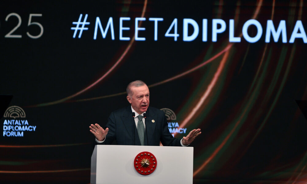 Antalyada bu yıl 4’üncüsü düzenlenen, 20yi aşkın devlet ve hükümet başkanı, 50den fazla dışişleri bakanı olmak üzere 70i aşkın bakan, yaklaşık 60 üst düzey uluslararası kuruluş temsilcisinin yanı sıra, aralarında öğrencilerin de bulunduğu 4 bini aşkın kişinin katıldığı Antalya Diplomasi Forumu (ADF) 2025in resmi açılışı, Cumhurbaşkanı Recep Tayyip Erdoğanın katılımıyla yapıldı. Resmi açılış törenine Cumhurbaşkanı Erdoğan, eşi Emine Erdoğan ile birlikte geldi. Teması Ayrışan Dünyada Diplomasiyi Sahiplenmek olarak belirlenen forumun resmi açılışında Cumhurbaşkanı Erdoğan ve Dışişleri Bakanı Hakan Fidan birer konuşma yaptı.