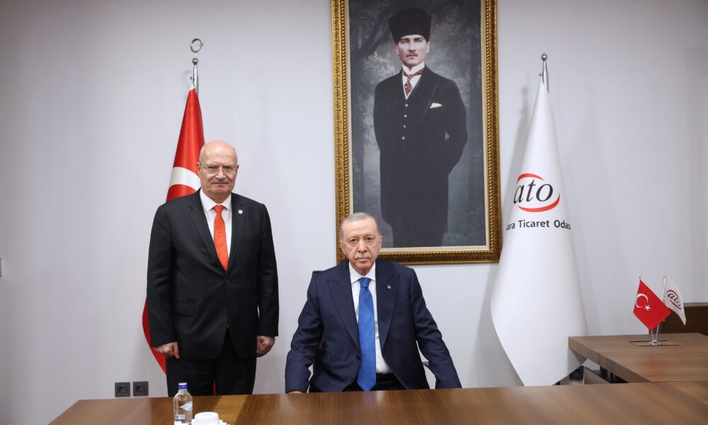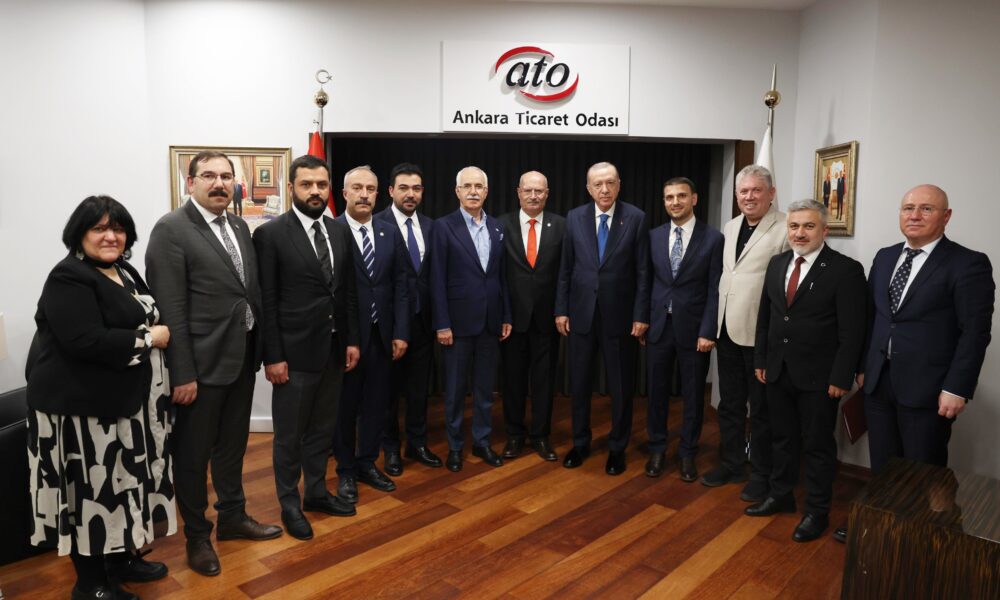 Cumhurbaşkanı Erdoğan, ATO’yu ziyaret etti. ATO yönetimiyle bir araya gelen Cumhurbaşkanı Erdoğan’ın ziyareti basına kapalı gerçekleşti. Cumhurbaşkanı Erdoğan’a ziyaretinde Cumhurbaşkanı Yardımcısı Cevdet Yılmaz, Ticaret Bakanı Ömer Bolat, Sanayi ve Teknoloji Bakanı Mehmet Fatih Kacır, Sağlık Bakanı Kemal Memişoğlu, Gençlik ve Spor Bakanı Osman Aşkın Bak, Cumhurbaşkanlığı Özel Kalem Müdürü, Büyükelçi Hasan Doğan, AK Parti Ankara Milletvekili Lütfiye Selva Çam, AK Parti Düzce Milletvekili Ayşe Keşir, Ankara Valisi Vasip Şahin ve AK Parti Ankara İl Başkanı Hakan Han Özcan eşlik etti.