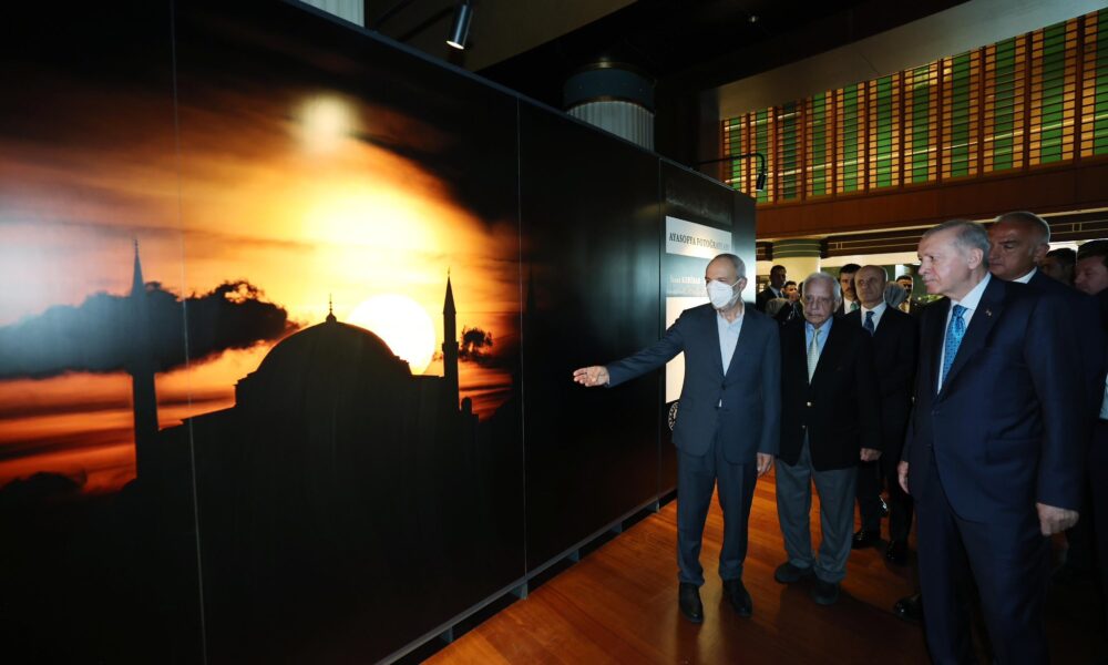 Cumhurbaşkanı Erdoğan, Ayasofya-i Kebir Cami-i Şerifinin yeniden ibadete açılmasının ardından, fotoğraf sanatçıları İzzet Keribar ve Mehmet Özçayın çektiği fotoğraflardan oluşan Cumhurbaşkanlığı Millet Kütüphanesinde sergilenen Ayasofya Fotoğrafları sergisini ziyaret etti. Sergideki fotoğrafları inceleyen Cumhurbaşkanı Erdoğana Kültür ve Turizm Bakanı Mehmet Nuri Ersoy ile Diyanet İşleri Başkanı Ali Erbaş eşlik etti.