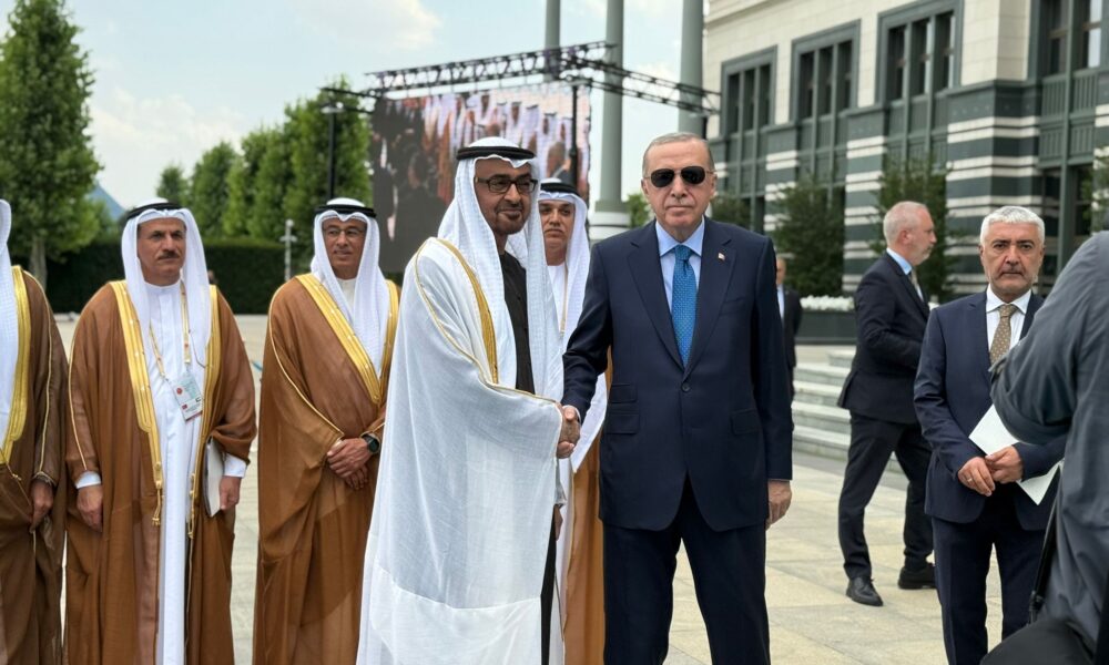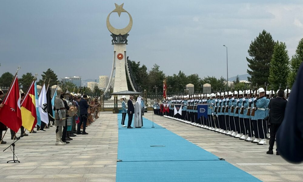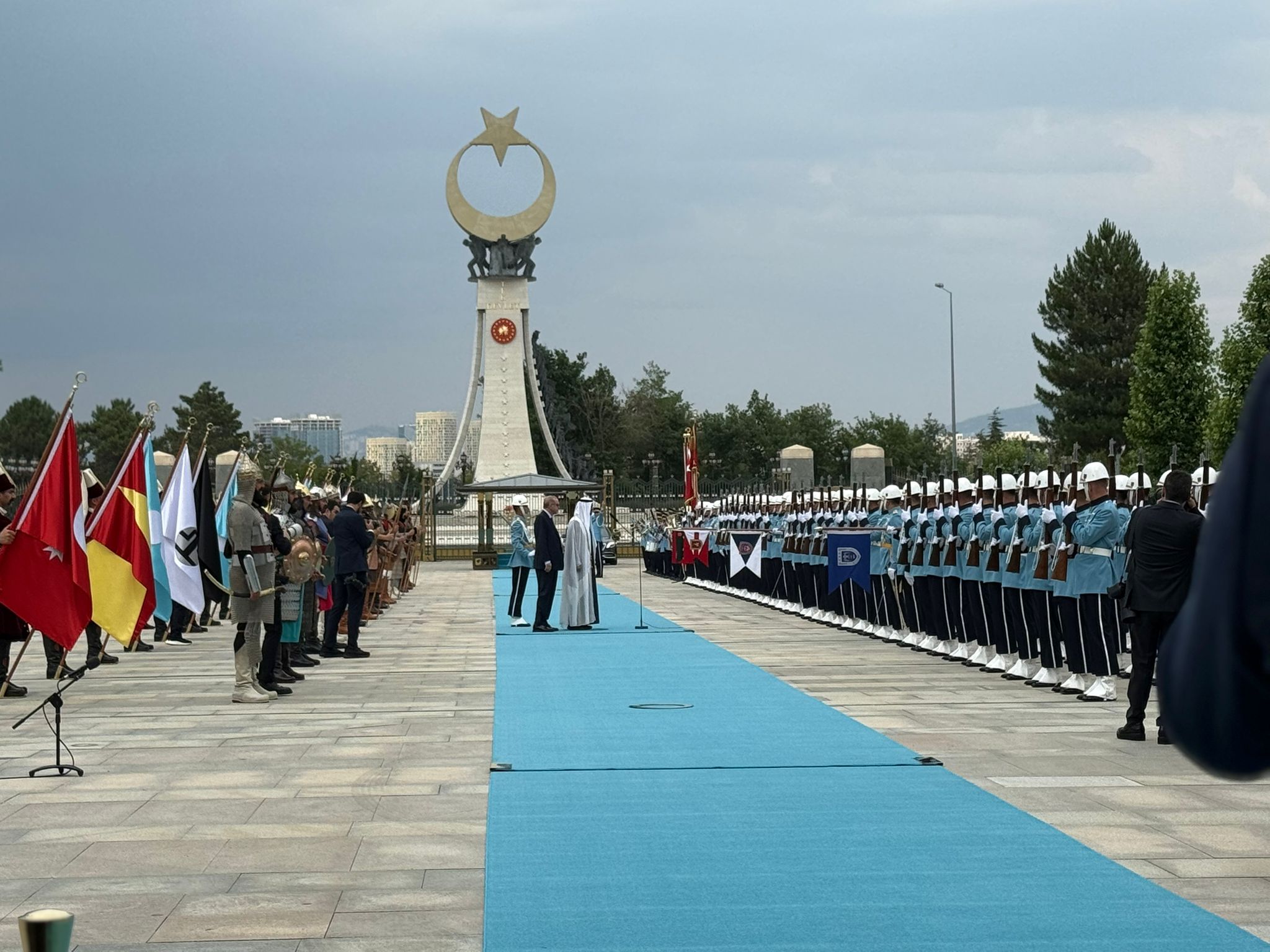 Cumhurbaşkanı Erdoğan, BAE Devlet Başkanı Al Nahyanı Cumhurbaşkanlığı Külliyesinde resmi törenle karşıladı. Erdoğan ve Al Nahyanın yerlerini almalarının ardından iki ülkenin milli marşları çalındı. Törende, Cumhurbaşkanlığı Muhafız Alayı tüfekli gösteri gerçekleştirdi. Törende, tarihte kurulan 16 Türk devletini temsil eden bayraklar ve askerlere de yer verildi, 21 pare top atışı yapıldı.