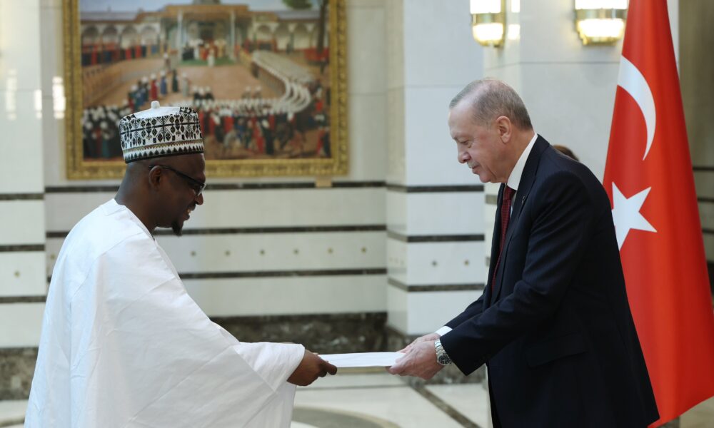 Gine Büyükelçisi Abdoulaye Fofana, Cumhurbaşkanı Recep Tayyip Erdoğan'a güven mektubunu takdim etti. Fotoğraf: Ankara, (DHA)