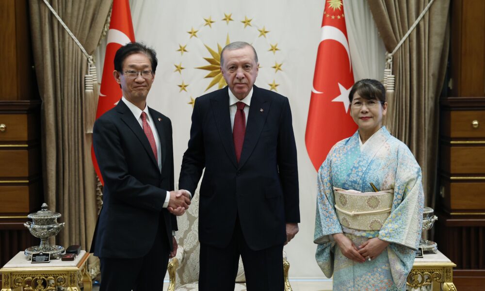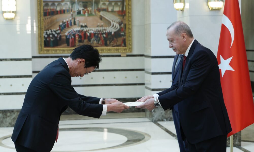 Japonya Büyükelçisi Masami Tamura, Cumhurbaşkanı Recep Tayyip Erdoğan'a güven mektubunu takdim etti. Fotoğraf: Ankara, (DHA)