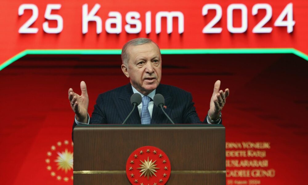 Cumhurbaşkanı Recep Tayyip Erdoğan, Beştepe Millet Kongre ve Kültür Merkezinde Kadına Yönelik Şiddete Karşı Uluslararası Mücadele Günü Programında konuştu. Erdoğan, bir eş, bir baba ve Türkiye Cumhurbaşkanı olarak, ülkenin ve dünyadaki tüm kadınların onurlarını, onurluca yaşama haklarını koruma mücadelelerinde daima yanlarında olacağını söyledi. Erdoğan, “Biz, bugün burada bu programı gerçekleştirirken, maalesef sınırlarımızdan birkaç yüz kilometre uzaklıkta aylardır büyük bir soykırım devam ediyor. İsrail’in Gazze’ye yönelik 14 ay önce başlattığı saldırılarda, bugüne kadar, 50 bine yakın Filistinli kardeşimiz şehit oldu. Hayatını kaybeden Filistinlilerin yüzde 70’ten fazlasını, ne yazık ki, masum çocuklar ve kadınlar oluşturuyor. Lübnan’a uzanan İsrail saldırganlığının en büyük mağdurları da yine kadın ve çocuklar” dedi.