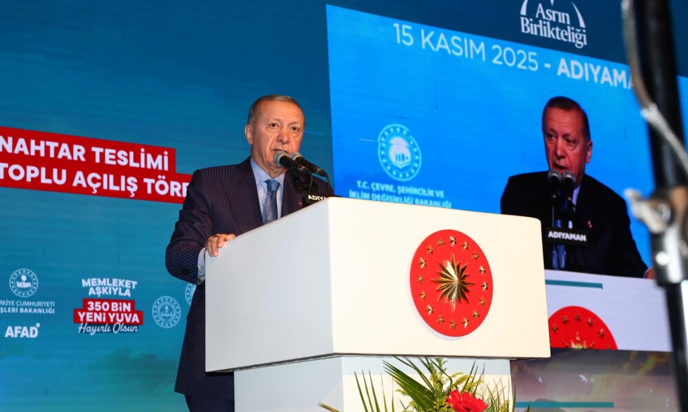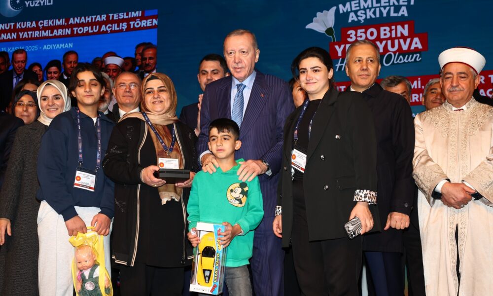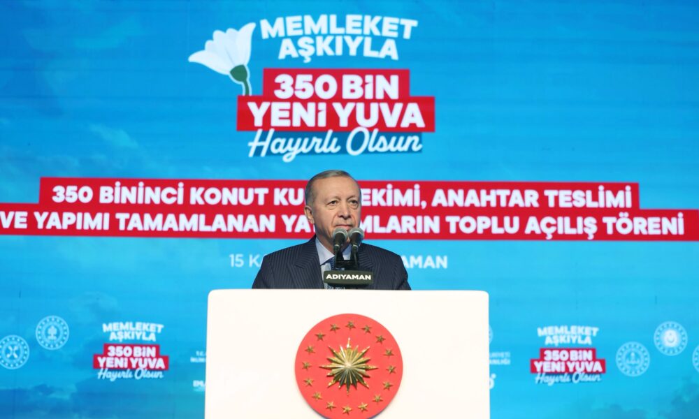 Cumhurbaşkanı Recep Tayyip Erdoğan, Adıyaman'da 350 bininci deprem konutlarının toplu anahtar teslim töreninde konuştu. Fotoğraf: Adıyaman, (DHA)