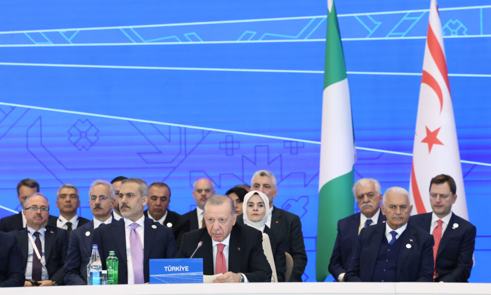 Cumhurbaşkanı Recep Tayyip Erdoğan, Azerbaycanın Hankendi kentinde düzenlenen ‘Ekonomik İşbirliği Teşkilatı (EİT) 17nci Zirvesinde konuştu. Konuşmasının başında zirveye ev sahipliği yapan Azerbaycan Cumhurbaşkanı İlham Aliyeve ve Azerbaycan halkına teşekkürlerini sunan Erdoğan, “Toplantımızın işgalden azat edilmiş bir şehirde, Hankendinde düzenlenmesi zirvemize ayrı bir önem ve mana kazandırıyor. İlham kardeşimin vizyoner yaklaşımıyla bu kadim şehrin Kafkasların yeni kalkınma ve barış merkezi olacağına gönülden inanıyorum” ifadelerini kullandı.