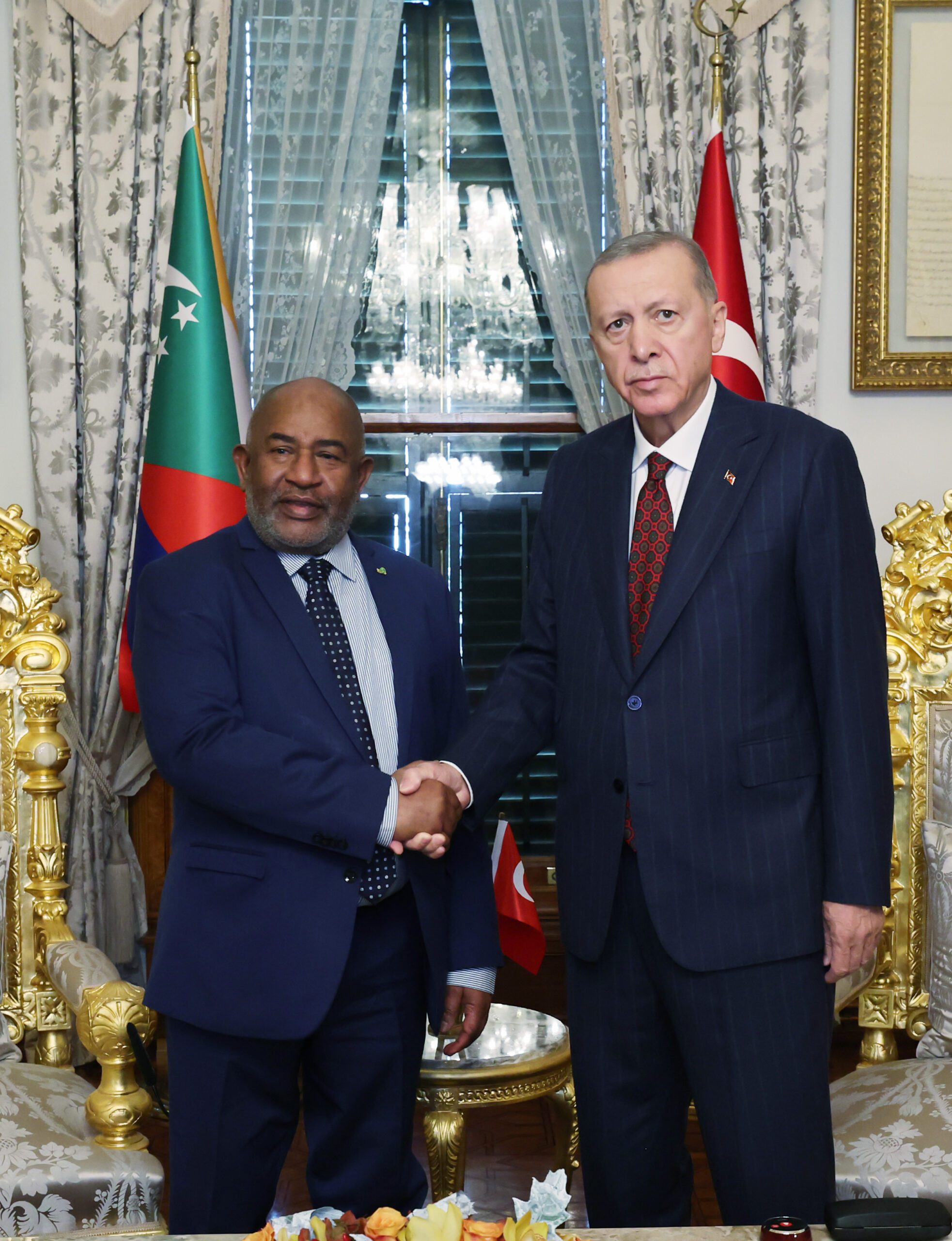 Cumhurbaşkanı Recep Tayyip Erdoğan, Türkiye-Afrika 4. İş ve Ekonomi Forumu kapsamında İstanbul’da bulunan Komorlar Birliği Cumhurbaşkanı Assoumani Azali ile Mabeyn Köşkü’nde görüştü. Görüşmeye ilişkin Cumhurbaşkanlığı sosyal medya hesabından fotoğraf paylaşıldı.