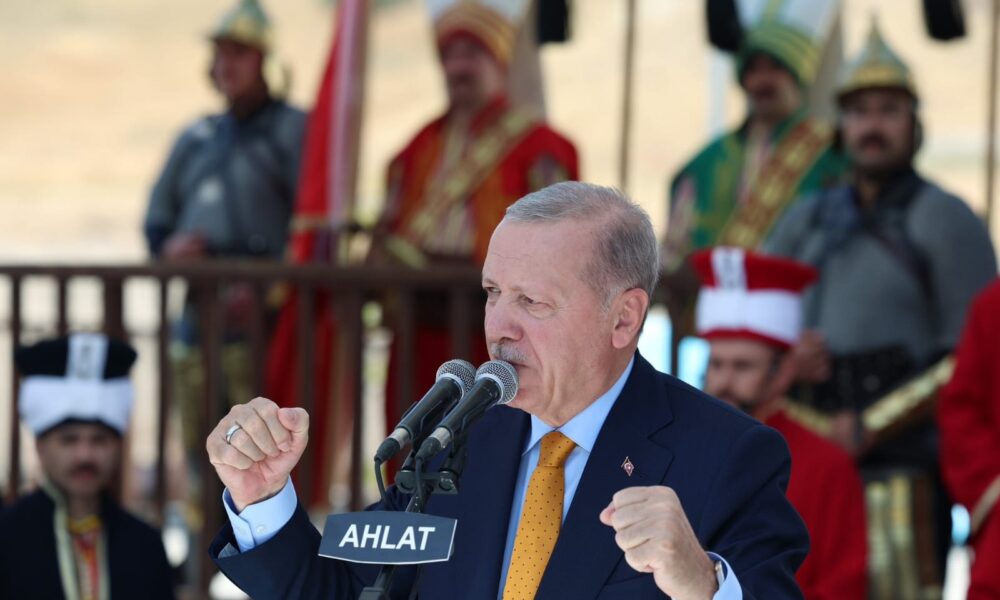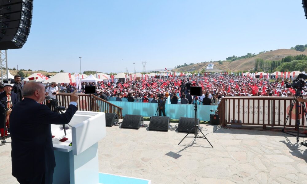 Cumhurbaşkanı Recep Tayyip Erdoğan, Ahlat'ta Malazgirt Zaferi'nin 954. yıl dönümü dolayısıyla düzenlenen törende konuştu. Fotoğraf: Ahlat (Bitlis), (DHA)