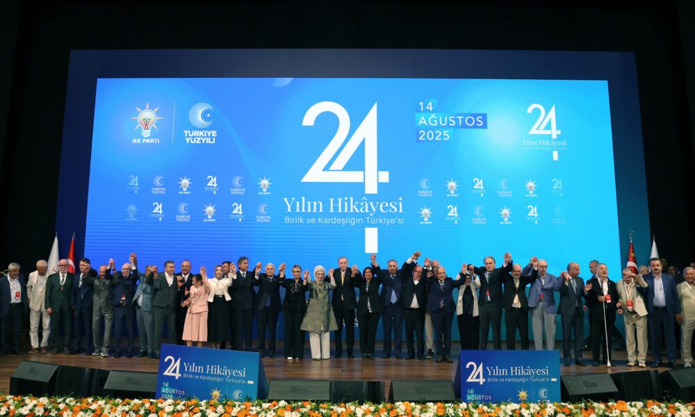 Cumhurbaşkanı ve AK Parti Genel Başkanı Recep Tayyip Erdoğan, partisinin 24üncü kuruluş yıl dönümü programında konuştu. Erdoğan, “AK Parti bugün 24 yaşında. Bugün milletimizin sinesinden, yine aziz milletimizin iradesiyle doğan; kadrolarıyla, hizmetleriyle, eserleriyle Türkiye’nin son çeyrek asrına damgasını vuran, gücünü ve cesaretini milletimizin kararlılığından alan AK Partimizin 24’üncü kuruluş yıl dönümünü büyük bir iftiharla kutluyoruz. Bugün, ufuk ve istikametini milletimizin çizdiği Anadolu ihtilali’nin 24’üncü senesini coşkuyla idrak ediyoruz” dedi.