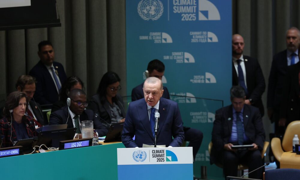 Cumhurbaşkanı Recep Tayyip Erdoğan, New York’ta Birleşmiş Milletler (BM) Vesayet Konseyi Salonunda düzenlenen İklim Zirvesinde konuştu. Cumhurbaşkanı Erdoğan, temmuz ayında kabul edilen İklim Kanununun 2053 net sıfır emisyon hedefine doğru önemli bir adım olduğunu belirterek, emisyon ticaret sistemini kurma, yeşil finans stratejisini uygulama ve ulusal yeşil taksonomi oluşturma çabalarının sürdüğünü anlattı.