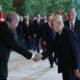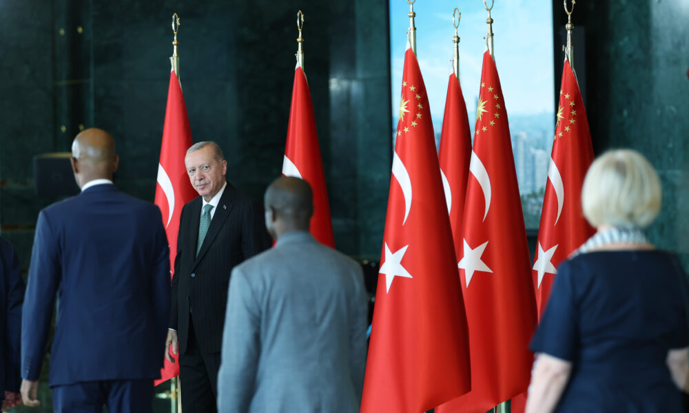 Cumhurbaşkanı Erdoğan, 30 Ağustos Zafer Bayramı dolayısıyla Anıtkabiri ziyaret ettikten sonra Cumhurbaşkanlığı Külliyesinde tebrikleri kabul etti. Tebrik töreninde; Cumhurbaşkanlığı Muhafız Alayı Bandosu marşlar seslendirdi. Cumhurbaşkanlığı Külliyesi ana bina girişinde düzenlenen törende; TBMM Başkanı Numan Kurtulmuş, Cumhurbaşkanı Yardımcısı Cevdet Yılmaz, AK Parti Grup Başkanı Abdullah Güler, Anayasa Mahkemesi Başkanı Kadir Özkaya, Yargıtay Başkanı Ömer Kerkez, Danıştay Başkanı Zeki Yiğit, Sayıştay Başkanı Metin Yener, MHP Genel Başkanı Devlet Bahçeli, Cumhurbaşkanlığı Kabinesi üyeleri, Milli İstihbarat Teşkilatı Başkanı İbrahim Kalın, Yükseköğretim Kurulu Başkanı Erol Özvar, Genelkurmay Başkanı Orgeneral Selçuk Bayraktaroğlu ve kuvvet komutanları, TBMM üyeleri, Diyanet İşleri Başkanı Ali Erbaş, Cumhurbaşkanlığı İletişim Başkanı Burhanettin Duran, Cumhurbaşkanı Genel Sekreteri Hakkı Susmaz, kamu kurumlarının yöneticilerinin de aralarında olduğu devlet erkanı, yabancı misyon şefleri ile uluslararası kuruluşların temsilcileri Cumhurbaşkanı Erdoğana tebriklerini sundu. Tören, Ankarada görevli askeri personeli temsilen her rütbeden asker ile sivil personelin Cumhurbaşkanı Erdoğana tebriklerini sunmasıyla sona erdi.
