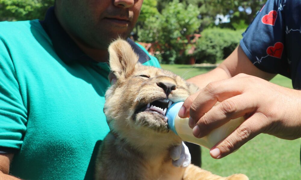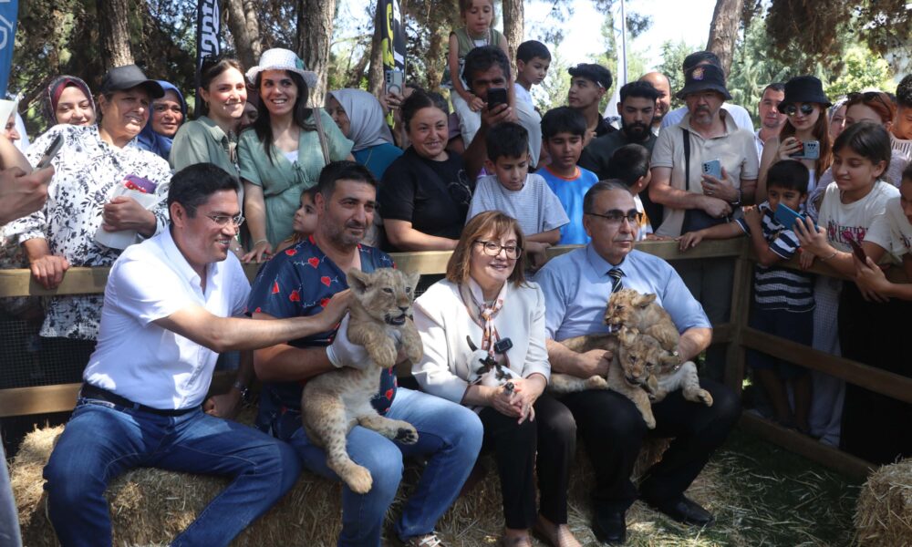 Büyükşehir Belediye Başkanı Fatma Şahin, yavru aslanları kucağına alarak sevdi. Ayrıca yavru aslanlara biberonlar ile süt verildi.
