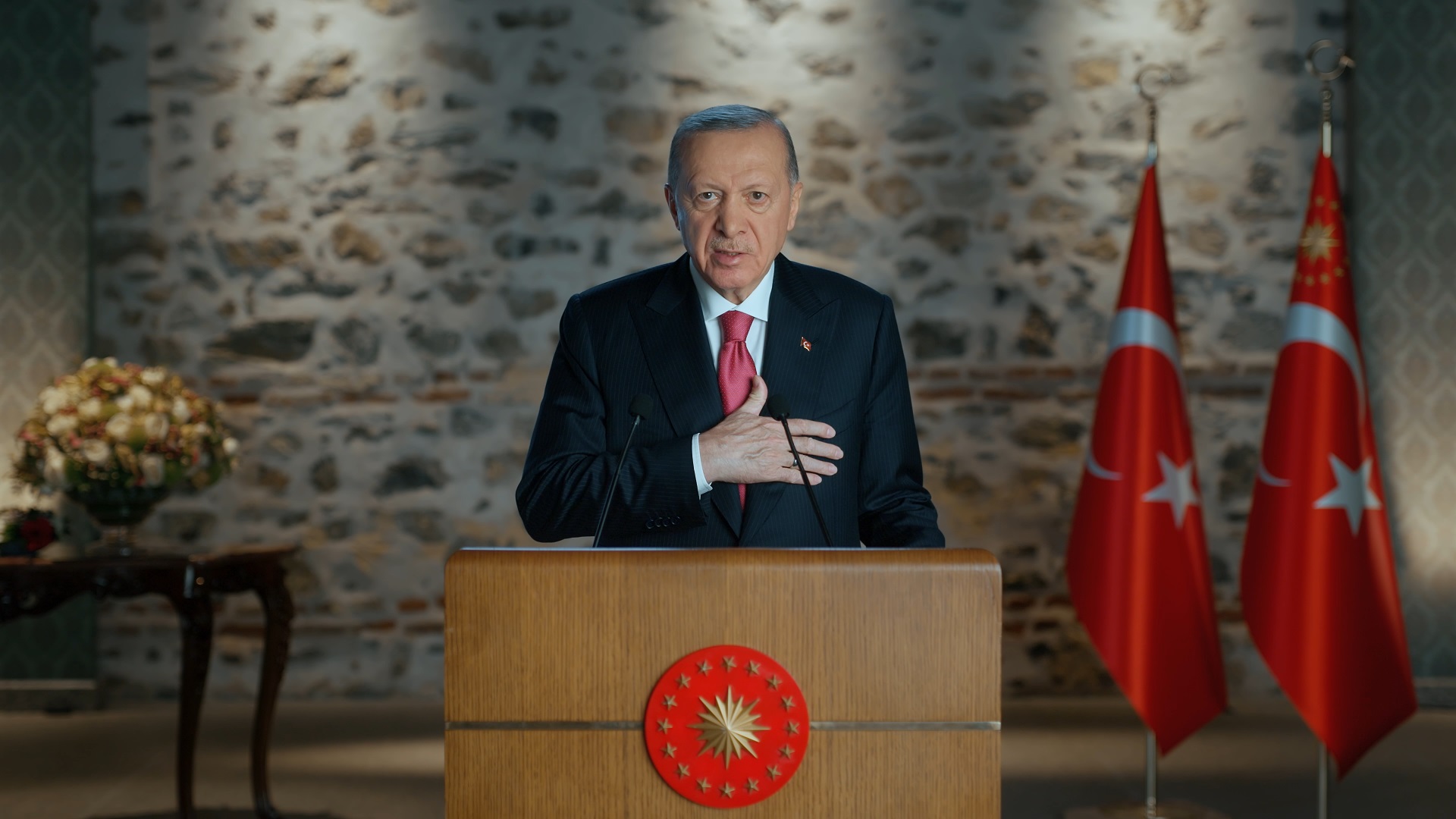 Anadolu topraklarında Selçukludan Osmanlıya ve nihayet Cumhuriyete uzanan devletlerin mirası olan bağımsız, güçlü, onurlu, müreffeh Türkiyeyi ilelebet payidar kılmakta kararlı olduklarını söyleyen Erdoğan, “Millet olarak Cumhurbaşkanlığı forsumuzdaki 16 yıldızda manasını bulan 2 bin 200 yılı aşan köklü bir devlet geleneğine sahibiz. Bu birikimi, soydaşlarımızın ve dostlarımızın da iştirakiyle insanlığın ortak mirasına en büyük katkıyı sunacak şekilde kullanmayı, geliştirmeyi, güçlendirmeyi hedefliyoruz. Hem ülke sınırlarımız içinde hem bölgemizde hem dünyada barışın, huzurun, güvenliğin ve adaletin hakim kılınması için milletimizin bu kadim tarihi perspektifine ve medeniyet değerlerimize daha sıkı sarılacağız. Verdiğimiz mücadelenin gayesine özellikle ulaşmasını ne terör örgütleri ne yayılmacı heveslerle bölgemizi kana ve ateşe bulamaya çalışanlar ne de onları destekleyip şımartan emperyalistler engelleyebilir. Bu amaçla nerede eksiğimiz varsa hepsini birer birer tamamlayarak ülkemizi muasır medeniyet seviyesinin üzerine çıkarmak için gece gündüz çalıştık, çalışıyoruz” ifadelerini kullandı.