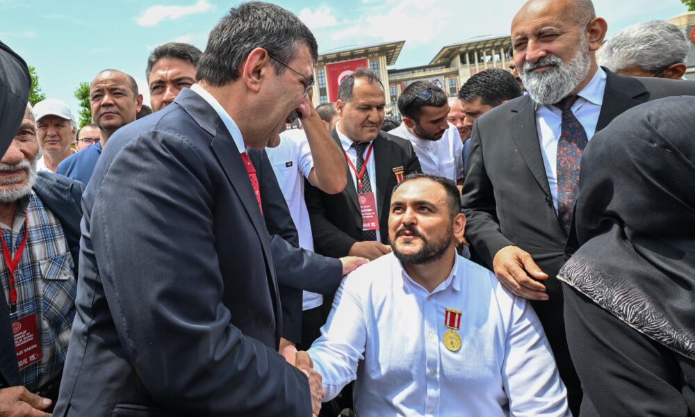 Cumhurbaşkanı Yardımcısı Cevdet Yılmaz, 15 Temmuz Demokrasi ve Milli Birlik Günü etkinlikleri kapsamında, Cumhurbaşkanlığı Külliyesinin karşısındaki alanda düzenlenen törene katıldı. Törende, Yılmazın yanı sıra Aile ve Sosyal Hizmetler Bakanı Mahinur Özdemir Göktaş, şehit yakınları ve gaziler yer aldı. Cumhurbaşkanı Yardımcısı Yılmaz, 15 Temmuz Demokrasi ve Milli Birlik Anıtına çelenk bırakarak, dua etti. Yılmaz, daha sonra anıt önünde şehit yakınları ve gazilerle fotoğraf çektirip, sohbet etti.