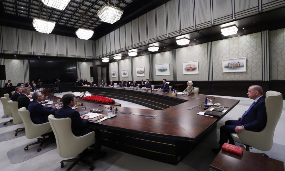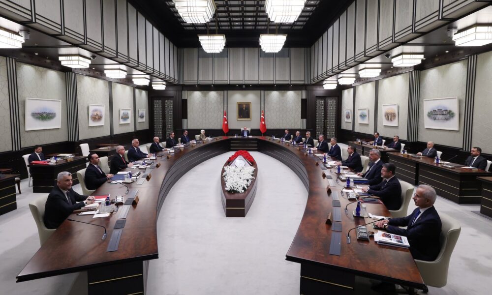 Cumhurbaşkanlığı Külliyesinde gerçekleştirilen Kabine Toplantısı, saat 15.35te başladı. Cumhurbaşkanı Erdoğan başkanlığındaki toplantıda, başta Terörsüz Türkiye sürecinde kaydedilen aşama ile Suriyenin bazı bölgelerinde faaliyetini sürdüren SDG meselesi, TBMM komisyonunda devam eden 2026 bütçe görüşmeleri, Rusya ile Ukrayna arasındaki ateşkes çabaları ve Gazzedeki son durum ile dış politikadaki gelişmelerin ele alınacağı belirtildi. Toplantının ardından Cumhurbaşkanı Erdoğanın açıklama yapması bekleniyor.