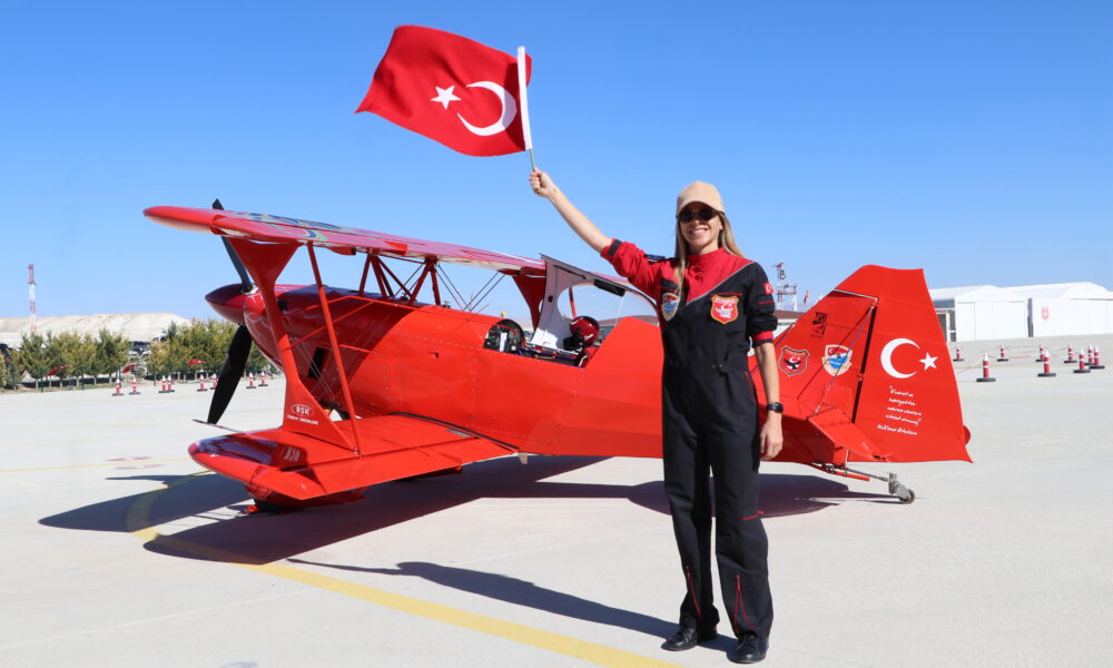 Koreografinin ardından ‘Yeni Menekşe’ isimli akrobasi uçağı ile izleyenler için ‘Cumhuriyet Bayramı Özel Uçuşu’ gerçekleştiren Semin Öztürk Şener, izleyenlerin nefeslerini kesti. Cumhuriyet Bayramı’nı coşkuyla kutladıklarını söyleyen Şener, “29 Ekim Cumhuriyet Bayramımız kutlu olsun. Sivrihisar Havacılık Merkezi’nde her yıl olduğu gibi büyük bir coşkuyla kutluyoruz Cumhuriyet Bayramı’mızı. En büyük bayram Cumhuriyet Bayramımız. Ben de böyle özel bir günde ‘Yeni Menekşe’ ile havada olmaktan dolayı çok büyük bir gurur duyuyorum. Benim için çok kıymetli. Ne mutlu Türk’üm diyene, yaşasın Cumhuriyet” dedi.