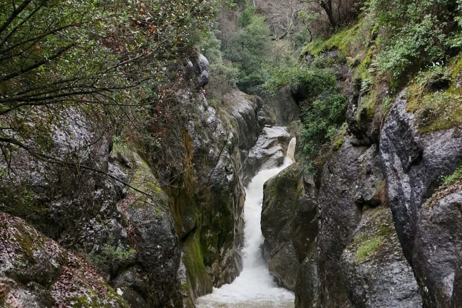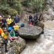 Dağcılar, yağışlar sonrası su seviyesi yükselen dereden geçerken zor anlar yaşadı