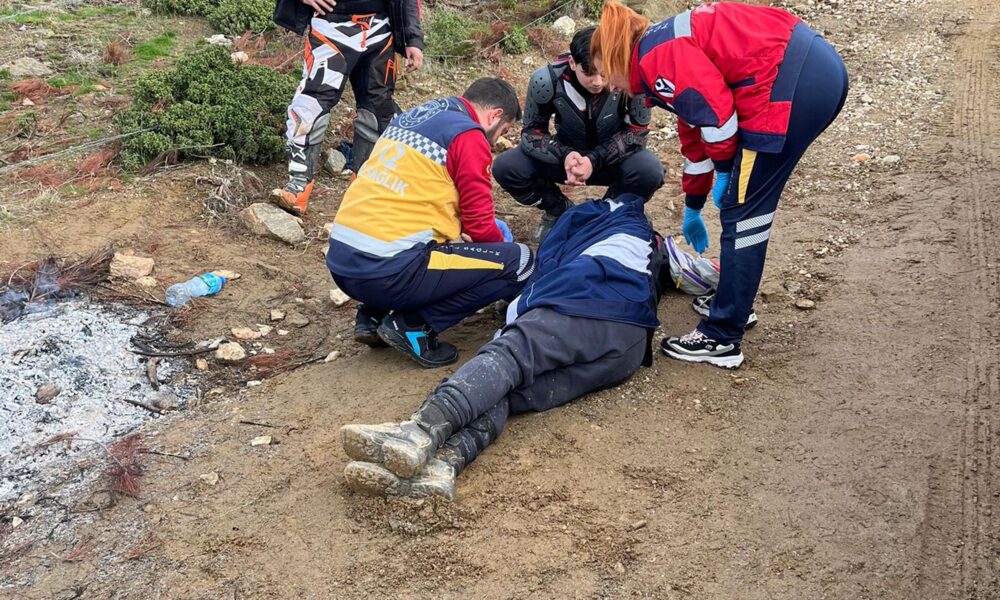 Dağda kaza yapınca mahsur kalan motosikletli, helikopterle kurtarıldı