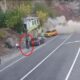 Dağdan kopan kaya parçasında son anda kurtuldu; o anlar kamerada