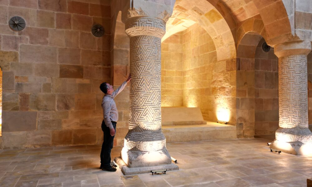 • Divriği Ulu Camii'nin darüşşifa bölümünde yer alan sütunlardan birinin Latince z harfi şeklindeki sarmal bezemesi, özellikle yabancı turistlerin ilgisini çekiyor. Fotoğraf: Eraydın Aytekin/Sivas, (DHA)