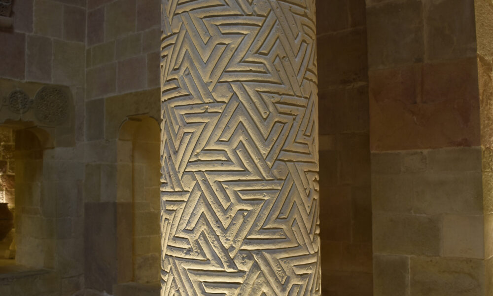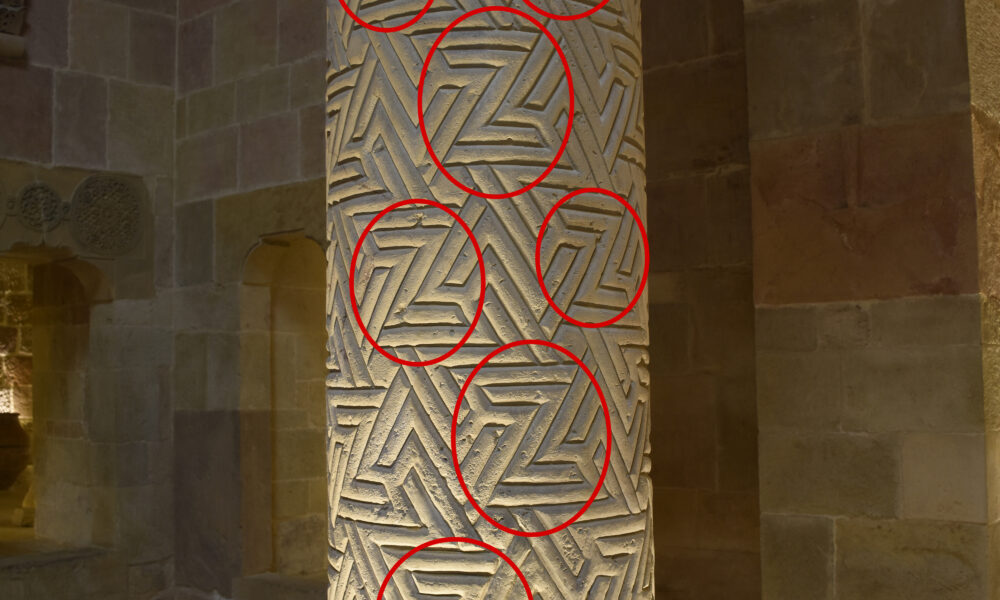 • Divriği Ulu Camii'nin darüşşifa bölümünde yer alan sütunlardan birinin Latince z harfi şeklindeki sarmal bezemesi, özellikle yabancı turistlerin ilgisini çekiyor. Fotoğraf: Hüsnü Ümit AVCI/Sivas, (DHA)