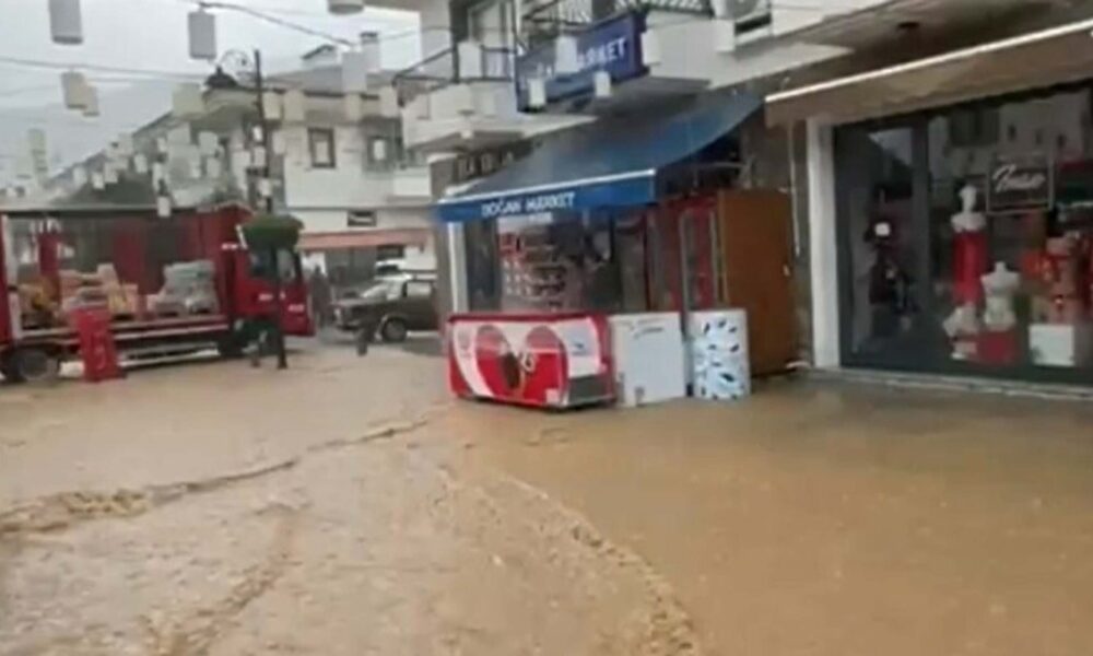 Datça’da sağanak; yollar göle döndü, deniz renk değiştirdi