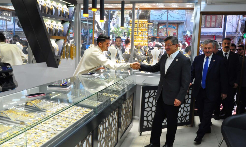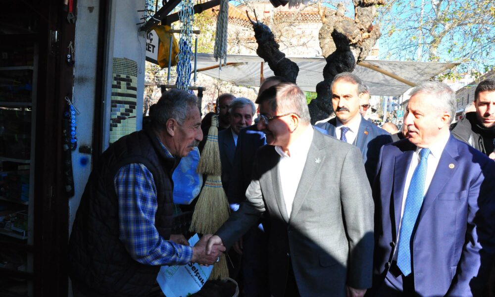 GELECEK Partisi Genel Başkanı Ahmet Davutoğlu, seçim çalışması kapsamında geldiği Manisada, şehir turu atıp, partisinin Manisa Büyükşehir Belediye başkan adayı Selçuk Özdağ için destek istedi.Gelecek Partisi Genel Başkanı Ahmet Davutoğlu, seçim çalışmaları kapsamında Manisaya geldi. Seçim otobüsüyle şehir turu yaparak, vatandaşları selamlayan Davutoğlu, Manisanın Şehzadeler ilçesindeki tarihi Hatuniye Camiinde kıldığı ikindi namazı ardından kuyumcu esnafını ziyaret etti. Davutoğlu, esnaflardan partisinin Manisa Büyükşehir Belediye başkan adayı Selçuk Özdağ için destek istedi.