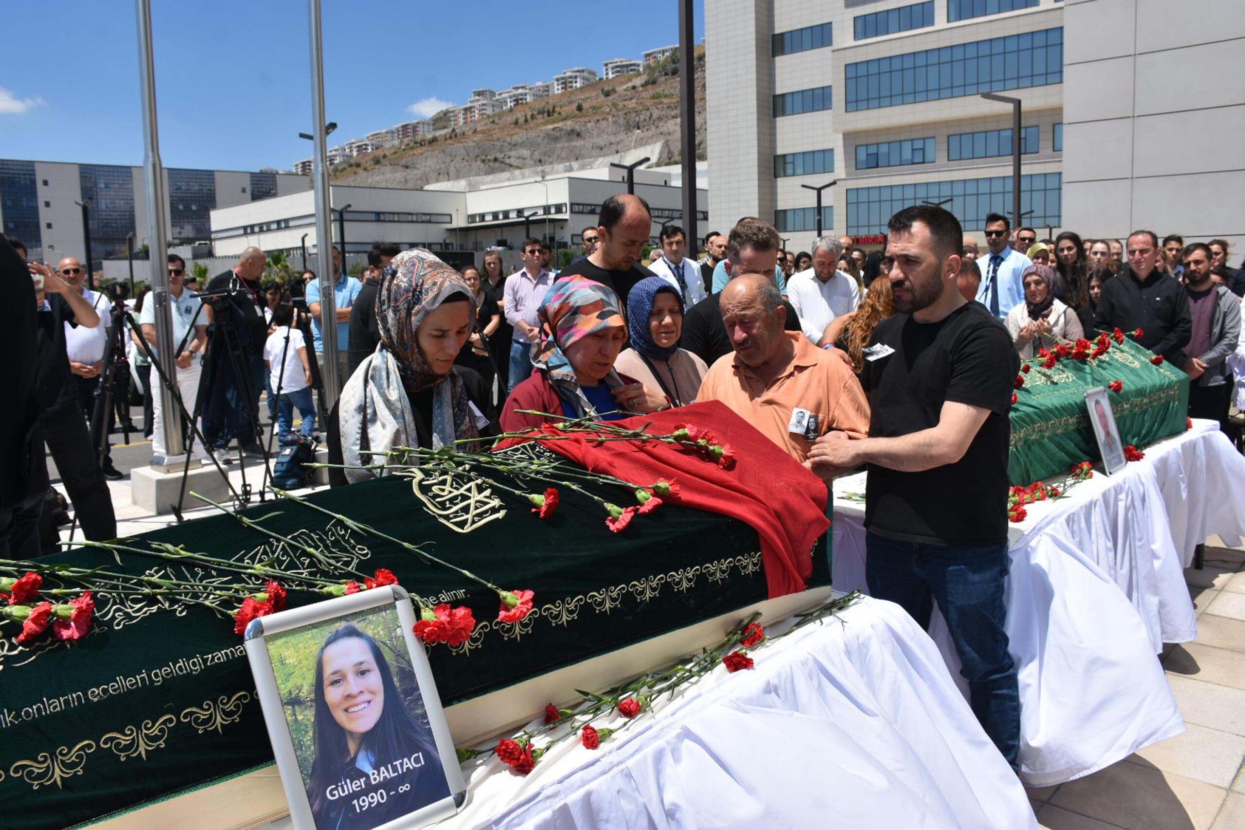 İzmir'de, dekoratif kemerin üzerlerine devrilmesi sonucu hayatını kaybeden Mehmet Baltacı ve eşi Güler Baltacı için İzmir Şehir Hastanesi Başhekimliği önünde anma töreni düzenlendi. Fotoğraf:Kadir ÖZEN/İzmir,(DHA)